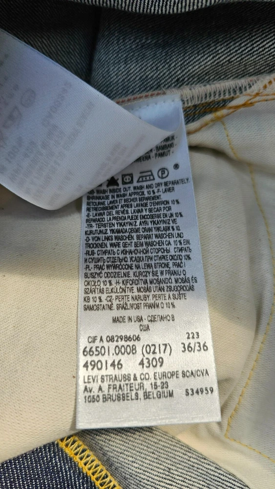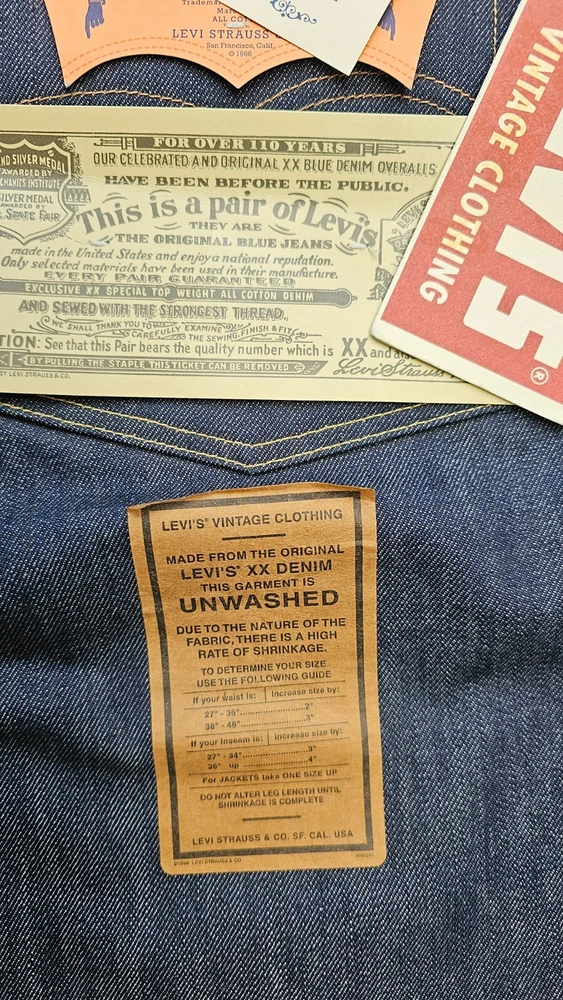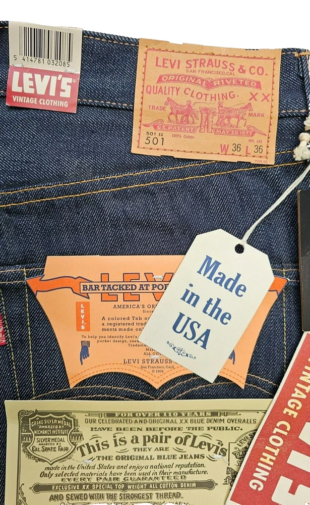Description ★ 501xx 1966 w33L36 ★66501-0008 ★ new unused ★Made in USA ★ Genuine product ★ top button 4420 ★ After washing, the waist inseam will shrink about 5 cm. model description ■ Product details ・Product 66501-0008 ・Style tapered straight ・Material: 100% cotton red selvage denim ・A country of origin: Product made in the United States ・Color rigid ●Specifications ・Button fly ・Watch pocket ・ 501/501XX paper patch ・Bar tack reinforcement ・Double-sided Big "E" red tab LEVI'S VINTAGE CLOTHING 1966 501XX Levi's, which changed all part numbers in 1967, wrote two part numbers, 501 and 501XX, on the paper patch only in 1966. The 501 at that time was widely recognized for its high quality, so it was decided to omit "XX", which means durable denim. However, since the new 501 is the same as the conventional product, the old part number 501XX was written in small letters at first. This "501 1966 model" is a reprint of the "66 model". The hidden rivets in the back pocket have been abolished, and a new specification is reinforced with thread bartacks, and a new flasher with this is adopted. The year number 1966 at the bottom is also a feature of the "66 model".