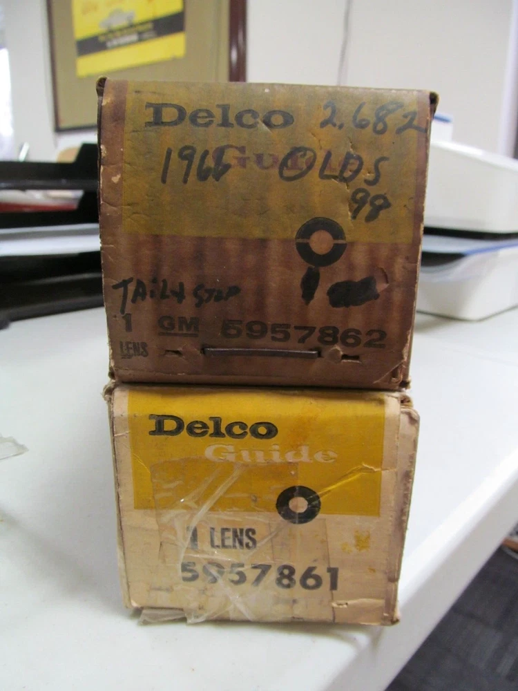 1966 Oldsmobile 98 NOS GM Tail Light Lens Set (outside clear). GM part # 5957861 5957862. In GM boxes. Fusick Automotive Products