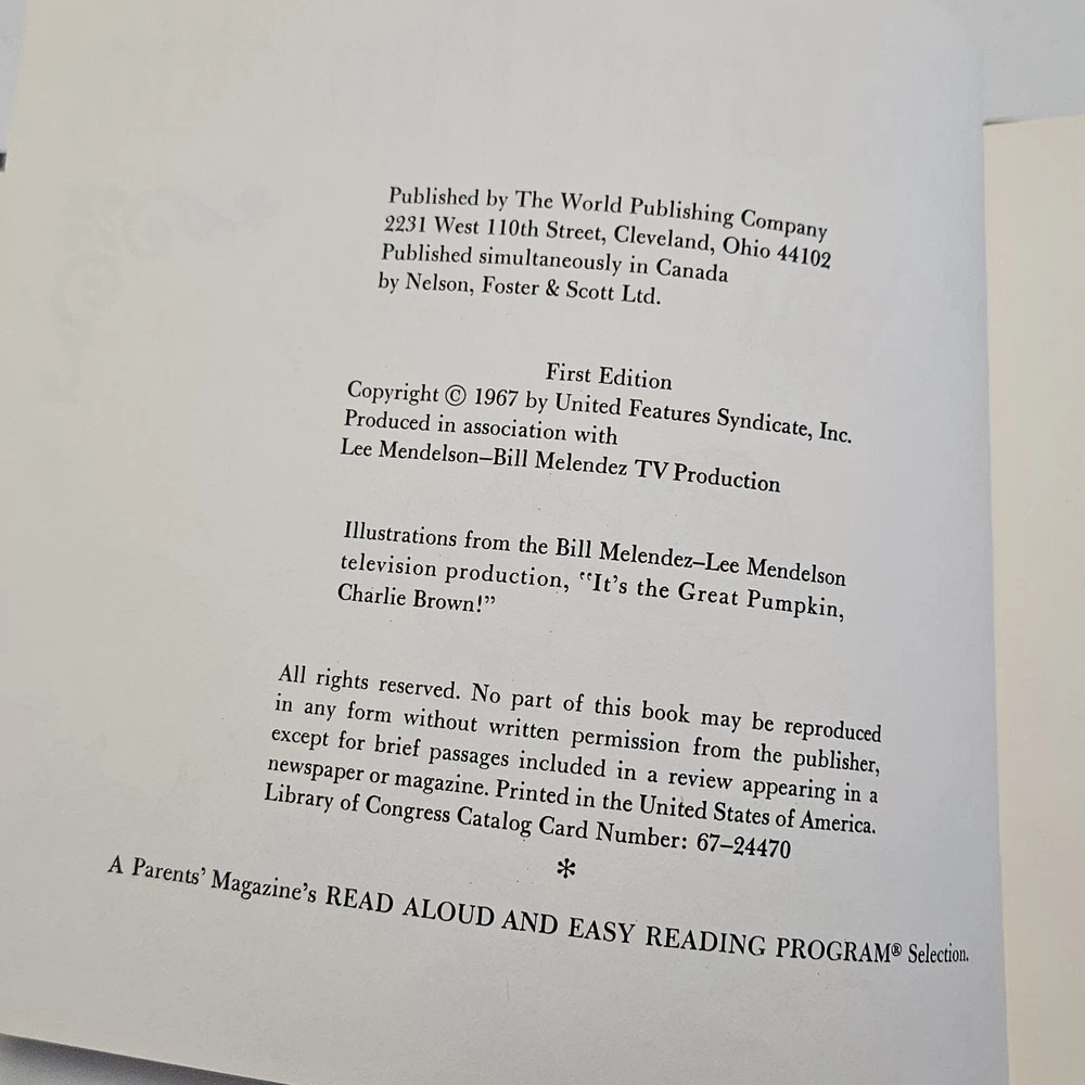 Celebrate a classic Halloween tale with "It's the Great Pumpkin, Charlie Brown," the cherished 1967 first edition hardcover book by Charles M. Schulz, adorned with the iconic illustrations of Bill Melendez and Lee Mendelson. Published by World Publishing, this humorous fiction piece captures the essence of the beloved Peanuts gang as they embark on a Halloween adventure, providing a timeless message about the spirit of the holiday. Suitable for a wide range of readers, from young children to adults, this board book measures 9 inches in length and 7 inches in height, with a comfortable weight of 10 ounces for easy handling. Dive into the nostalgia of the 1960s with this English-language edition, a must-have for collectors and fans of the Peanuts universe, enjoying a piece of literary history that has withstood the test of time.