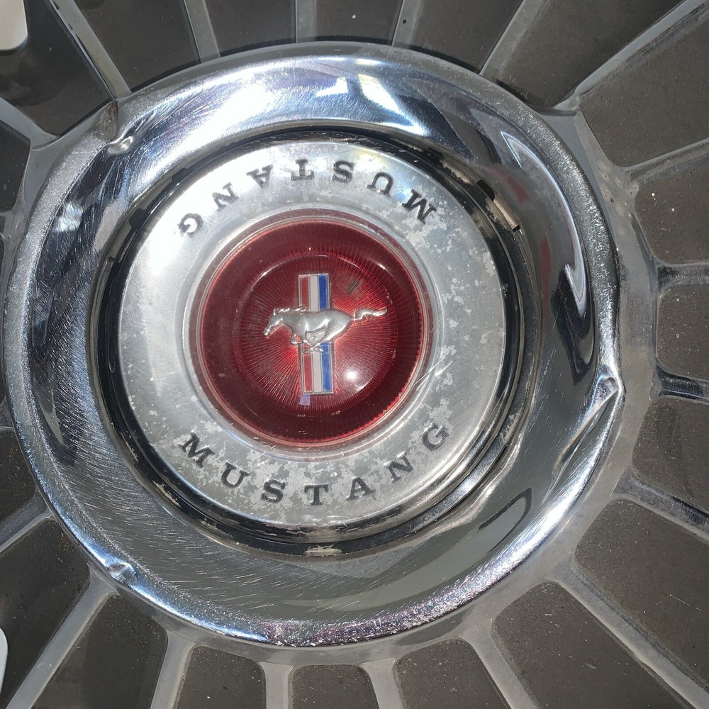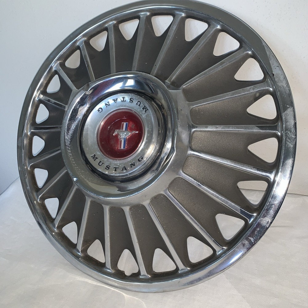 This vintage 1967 Mustang hub cap is the perfect addition to your vintage Ford Mustang. Made with high-quality materials, this 21-rib cap is designed to fit 14-inch wheels and comes in a sleek silver color. Featuring the iconic Mustang logo, this hub cap is a great way to add some style to your ride. Whether you're a collector or just looking for a unique accessory, this vintage hub cap is sure to impress. Don't miss out on the opportunity to add this classic piece to your collection. Dented around the 6" ring - I think a restorer could fix it.