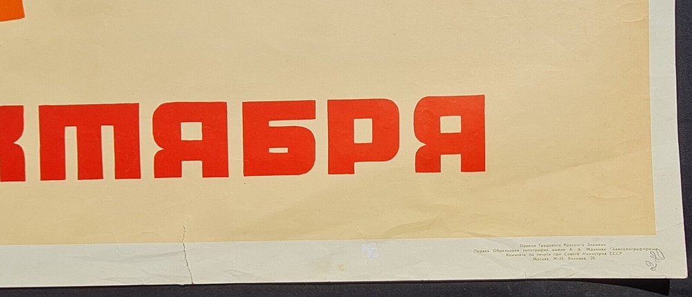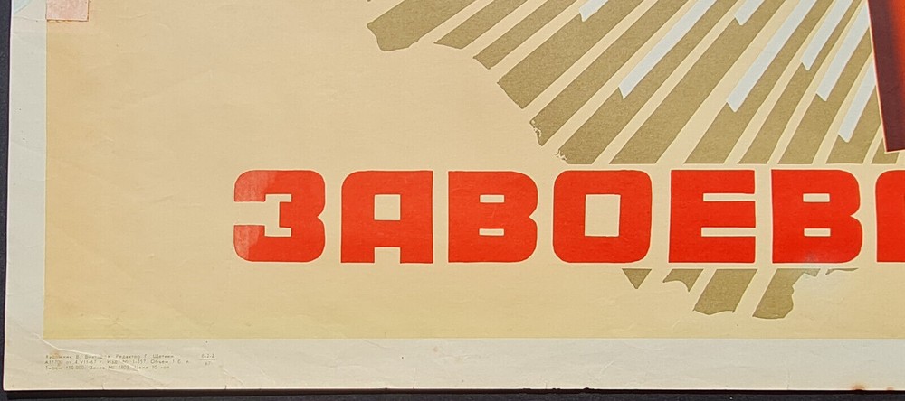 1967 Soviet Poster – CONSTITUTION OF USSR – PEACE FREEDOM EQUALITY ARTWORK Poster Information Poster Artist: Viktorov Valentin Petrovich Print Year: 1967 Print Run: 150,000 Language: Russian Subject: USSR Constitution Published By: Sovetskiy Khudozhnik, Moscow Size: IN: 25½ x 38¼ CM: 65 x 97 Condition: Near to good, Flat Description & Historical Background Original Russian slogan: МИР * ТРУД * СВОБОДА * РАВЕНСТВО * БРАТСТВО * СЧАСТЬЕ – КОНСТИТУЦИЯ СССР – ЗАВОЕВАНИЕ ОКТЯБРЯ English translation: PEACE * LABOR * FREEDOM * EQUALITY * BROTHERHOOD * HAPPINESS – CONSTITUTION OF USSR – CONQUEST OF OCTOBER Printed to mark the 50th anniversary of the October Revolution, this 1967 propaganda poster celebrates the ideological pillars of the Soviet state. With its declarative typography and minimalistic design, it was created to promote civic pride and loyalty to Soviet values across educational, industrial, and government institutions. Style Text-centric and formal, this poster uses strong red fonts and logical layout to deliver high-impact ideological messaging. It exemplifies Brezhnev-era civic propaganda and reflects the cultural gravitas of constitutional loyalty in the Soviet Union. Artist Viktorov Valentin Petrovich worked during the 1960s as a graphic designer and illustrator. He produced state-commissioned artwork aimed at reinforcing national identity and ideological devotion through symbolic visual messaging. Condition This poster is preserved flat with mild corner wear and slight handling marks near the edges. Overall good condition with rich, unfaded text and excellent visual clarity. A rare ideological document from the Cold War era — an evocative addition to any Soviet history collection. PavloPosters – Where history and art meet!
