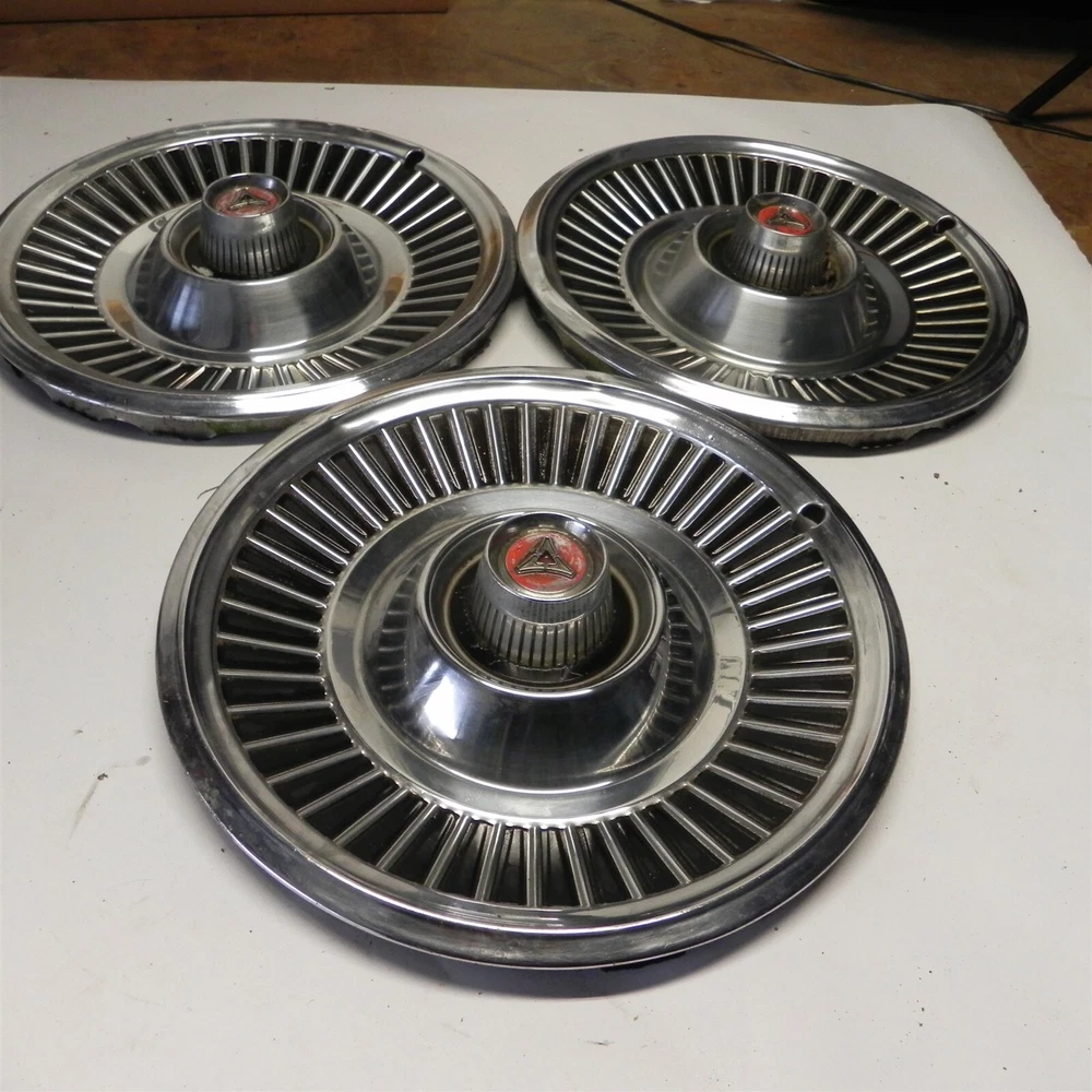 1967-68 DODGE VINTAGE FACTORY OEM 14-INCH HUBCAP WHEEL COVERS SOLD AS A LOT OF 9 1967-68 DODGE VINTAGE FACTORY OEM 14-INCH HUBCAP WHEEL COVERS SOLD AS A LOT OF 9 USED WITH SOME MINOR ROAD WEAR AND SMALL DINGS See photos below for details. ABOUT US Jones Vintage Parts has been a family-owned business for over 40 years. We specialize in rare and vintage NOS and used parts for all makes and models from the teens to the 70s. We're passionate about uncovering and restoring the stories of the treasures from your grandparents and great grandparents history. We believe in breathing new life into the world's first modes of transportation. New vintage all the time! SHIPPING INFORMATION Purchased items will generally ship Monday through Friday, within 3 days via USPS Flat Rate or First Class upon payment receipt. Larger items will be shipped via FedEx Ground or UPS. Multiple same-day purchases will be combined for discounted shipping (request a revised invoice to receive bulk shipping discount or notify us of future purchases). International shipping also available. RETURN POLICY Our goal is your satisfaction. If you are unhappy with your order for any reason items may be returned for parts credit within three (3) days of receipt, and you will be charged a 10% restocking fee. There are no shipping refunds. Exchanges will be billed appropriate freight. All return items must be complete, undamaged, unaltered and in resale condition. You may be interested in our other eBay listings . Powered by SixBit's eCommerce Solution
