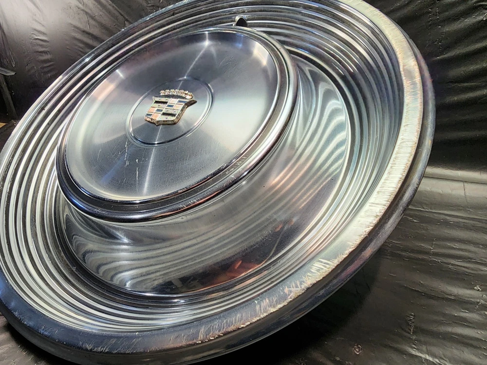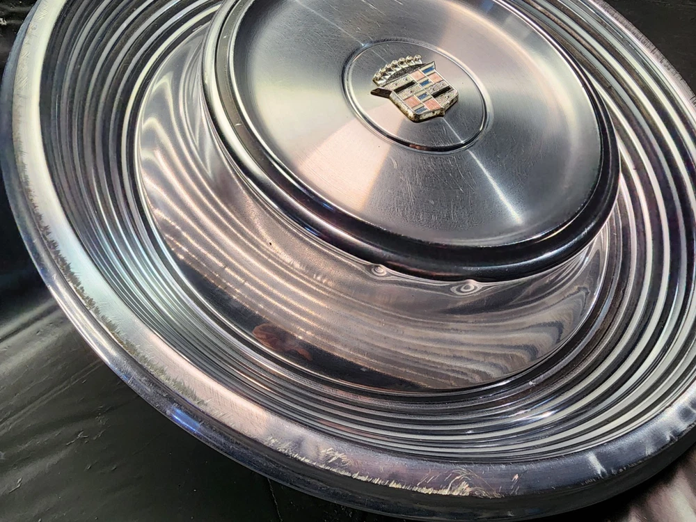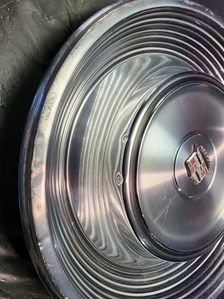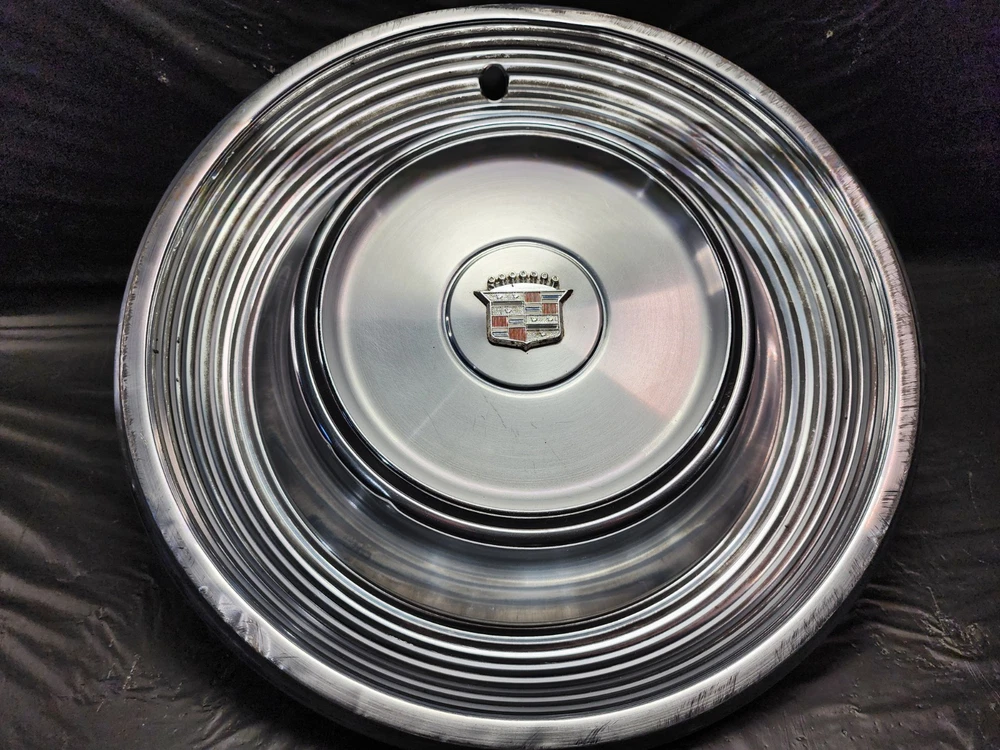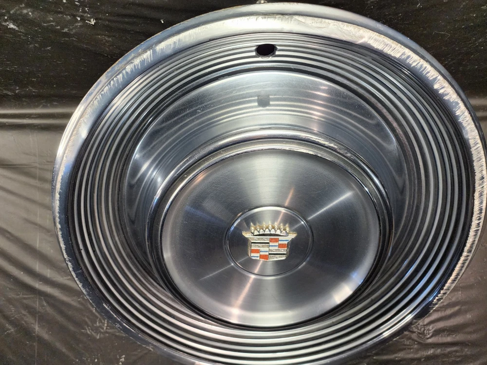Vintage 40s 50s 60s 70s hub caps. 1968 - 1969 Cadillac single Original OEM Factory OE hubcaps wheel covers center caps. hubcap is pretty well scratched up with a few small dings, would be great for a ratrod or wall hanger. These are Used hubcaps off of old classic cars that were driven on the road and used, so please see photos for complete condition as they are not all perfect. Most have some fading, dings, scuffing, mineral staining, etc could use a good polishing to bring em back to full shine, but otherwise in beautiful condition. Check out more of my ebay page as we are going through and listing a ton of classic / vintage hubcaps from the the 20's 30's 40's 50's 60's 70's 80's 90's 00's and up. all different makes and models such as Ford Chevy Chevrolet GM Cadillac GMC camero nova Chevelle Nomad Bel Air Mercury Corvette Mustang Oldsmobile Pontiac Lincoln Dodge Plymouth Buick Chrysler Mopar Fairlane Volkswagen Cheiftain Challanger Charger 1500 4x4 muscle car hot rod rat rod Cars and Trucks 15in 14in 16in and so much more from full sets to sets of 2 and singles, you name it check us out!