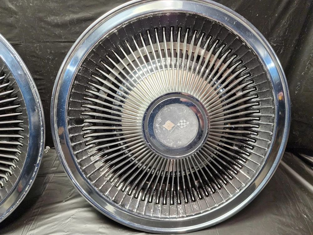 Finish: Polished Type: Hub Cap Color: chrome Material: Chrome, Stainless Steel, Steel Number in Pack: 2 Manufacturer Part Number: Standard 10 12 Bolt Posi Locker Torque Driveshaft Universal Joint, Transmission 3 4 Three Four Speed Overdrive Automatic Manual, Hinge Strut Shock Control Arm Steering Suspension Ball Joint, Upper Lower Belt Inner Fender Panel Cowl Firewall Cable Vent Horn, Restore Repair Rebuild Replace Harmonic Balancer Pulley Bracket, 5 6 8 Five Six Eight Lug Steel Wheel Rim 14 15 16 Offset Hubcap, Wheel Cover Dog Dish Poverty Cap Redline Bias Ply, Valance Panel Spoiler Extension Patch Deck Lid Trunk Spare, Camaro Chevelle Impala Belair Biscayne Caprice One-Fifty Two-Ten, Nomad Chevelle Malibu Nova Chevy II Monte Carlo Laguna, 3100 3600 3800 C/K C10 C20 C30 K10 K20 K30 1/2 3/4 1 Ton, Pickup Fleetside Stepside Tailgate Bed Box Truck Cameo, Fleetline Stylemaster Styleline Special Deluxe Master 85, Coupe Sedan Convertible Roadster Delivery Wagon Suburban, Carry All Corvette Vette Corvair Delray Yeoman, GTO Tempest Lemans Catalina Bonneville Star Chief Silver Streak, Streamliner Ventura Executive Firebird Strato Chief, Century Special Super Roadmaster 40 50 60 70 80 90 Series, GS Skylark Riviera Wildcat LeSabre Electra 225, 442 Cutlass F85 Starfire Delta 88 98 Dynamic, Mustang Falcon Fairlane Galaxie XL 500 LTD Torino, Maverick Starliner Deluxe Shoebox Custom Cobra GT 350 500, Barrcuda Cuda GTX Satellite Belvedere Plaza Fury Roadrunner, Charger Challenger Coronet Polara Monaco Duster Dart Scamp, Superbee Daytona Mopar 426 440 383 Hemi, Small Big Block Inline Straight 6 8 Six Eight Slant, 207 216 235 261 265 283 302 307 327 350 396 402 427 454, 170 200 250 270 289 302 351 390 428 429 SCJ, 226 272 273 292 318 340 360 361 383 413 426 440, SS Super Sport 348 409 ZL1 Z16 L34 L78 RPO Yenko COPO Superseded Part Number: Tattersfield Weiand Man A Fre Offy Offenhauser Stromberg 97, Powerglide Ford-O-Matic M22 T-5 T-10 Wingnut Gasket Housing, Cast Iron Aluminum Die-Cast Brass Copper Stamped Steel, Sheet Metal Body Panel Curb Feeler Rod Holder Tappet Rocker Arm, Filter Element Brake Booster Disc Drum Caliper Square Body OBS, Dentside Pilot House 3 5 Window Cab Bed Rail Tie Down Tow Hooks, Trailer Hitch Package Wiring Harness Plug Contact Electrical, Ford F1 F2 F3 F4 F5 F6 F100 F150 F250 F350 F450 F500 F600 Tough, D100 D150 D250 D350 W100 W150 W250 W250 Power Wagon, Magnum 500 American Racing California Custom Hollywood, Accessories Add-On Bolt-On Performance Throttle Body Air Horn, Edelbrock Performer WCFB Quadrajet 2-Jet AFB Airtex Weber, Paint Polish Patina Ride OG Bomba Lead Sled Low Poncho, General Motors Chrysler FoMoCo Big 3 Insulator Switch Hazard, Directional Clearance Toggle Turn Signal Marker Lamp Trailer, New Old Stock Survivor Daily Driver Cross Member Shaker Scoop, Model A T B Auotmobile Vehicle Automatic ASE SAE Welded Riveted, Tester Service tool 911 914 Bug Bus Karmann Ghia Vintage Part: Yes OE/OEM Part Number: Ram Air I II III IV V Cowl Induction FI Fuel Injection LS6 Judge, Z11 ZR2 L-88 Stingray Mid-Year 3x2 2x4 Intake 215 V8 I6, Cougar GT-E Cobra Jet Thunderbird T-Bird Cyclone GTHO GT350R, Boss 429 Torino Talladega Thunderbolt Coyote AAR Cuda, Accessory Spotlight Fog Lamp Driving Light Fender Skirts Visor, Bumper Grill Guard Cruise Control Cigarette Lighter Ashtray, Vent Shades Window Venetian Blinds Compass Banjo Spinner Wheel, Locking Gas Cap Hood Ornament Flashlight Hood Ornament, Passing Peep Mirror Swamp Cooler A/C 8 Track Vacuum Dispenser, Fulton Guide Appleton Lorraine Trippe Foxcraft Fox Craft Santay, Dinsmore Trico Mculloch Auto-Lite Motorcraft Prestolite, Peckat Eelco Moon Equipped Thickstun Winfield Isky, Holley Carter Rochester Detroit Lubricator Stewart, Kelsey Hayes Motor Wheel Muncie Borg-Warner BW Delco-Remy, Date Code Numbers Matching Factory Original Period Correct, Concours Woody Club Coupe Cabriolet Fordor Tudor 32 Deuce, A-400 B-400 Baby Hemi Barn Find Fresh Beltline Bonnet, Bucket Bull Nose Carson Top Chopped Channeled Sectioned Dagmars, Dual Quad DuVall Fastback Aero Sedan Flathead Four Banger, Gasser Front Clip Doghouse Gear Box GOAT Grill Shell Hairpins, Highboy Hiboy Hopped Up HopUp Juice Brakes Knock Offs, Cragar Spoke Rim Wheel Louvers Lowboy Mag Moons Merc, Nailhead NOS Vintage Classic Old Original Phaeton Pony Car, Quarter Window Raked Hot Rat Rod Rockcrusher Rocket Rumble Seat, Running Board Scallops Scatter Shield Lakefield Scoop Sidemount, Six-Pack Slushbox Split Window Steelies Stacks Stove Bolt Stroker, Survivor Three on the Tree Touring Track T Tri-Five Tri-Power, Vicky Victoria Wedge Wheelie Bars Cross Member Motor Mount FE, T-Bucket Street Machine White Walls Bent Spoke Trailer Hitch, Resto Mod Corvette C1 C2 C3 Quick Change Candy Paint Compatible Wheel Diameter: 15 in Interchange Part Number: 1910 1911 1912 1913 1914 1915 1916 1917 1918 1919 1920 1921 1922, 1923 1924 1925 1926 1927 1928 1929 1930 1931 1932 1933 1934 1935, 1936 1937 19938 1939 1940 1941 1942 1946 1947 1948 1949 1950 1951, 1952 1953 1954 1955 1956 1957 1958 1959 1960 1961 1962 1963 1964, 1965 1966 1967 1968 1969 1970 1971 1972 1973 1974 1975 1976 1977, Buick Cadillac Pontiac Oldsmobile Chevrolet Oakland Durant Star, GMC White REO Autocar IHC International Sterling Dodge Fargo COE, Dodge Plymouth Chrysler DeSoto Mopar Car Truck Franklin Ford, Dodge Brother Mercury Lincoln Edsel AMC Rambler Studebaker JEEP, Hudson Willys Graham Nash Opel Viking Durant Star Auburn LaSalle, Pierce Arrow Erskine Essex Hillman Kissel Marmon Peerless Rockne, Stutz Triumph MG Jaguar Stoewer Cord Jordan Lorraine, Accessory Interior Exterior Option Dealer Factory Part Install, Rare Scarce Add-On Optional Chrome Painted Nickel Plated Satin, Fender Hood Trunk Door Rocker Roof Factory Wheel Rim Tail Light, Headlight Backup Light Lamp Glass Windshield Gas Tank Door Trim, Molding Ornament Emblem Mascot Mirror Grill Grille Spear, Interior Seat Dash Gauge Panel Cluster Radio Stereo Speaker Dial, Door 