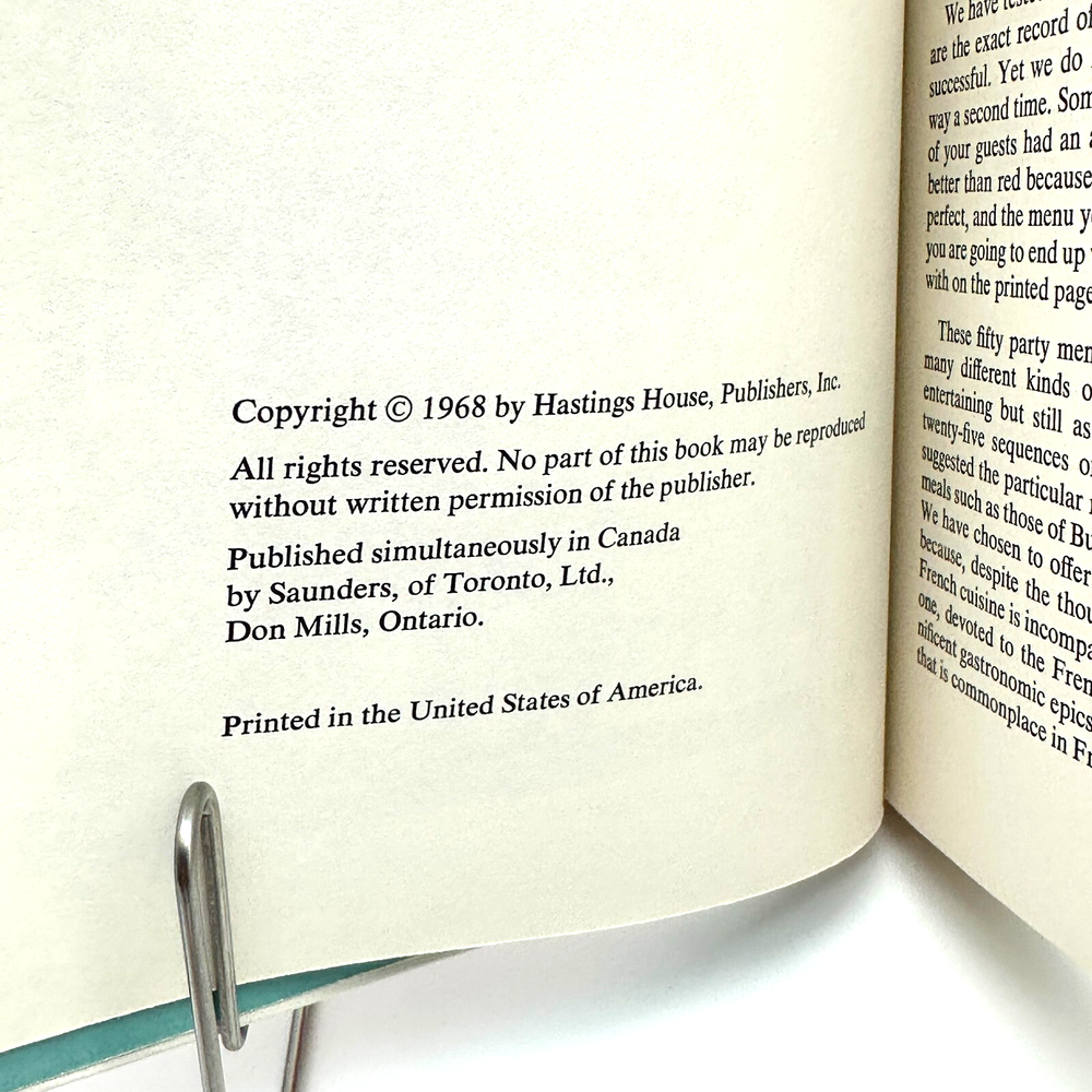 Step into the elegance of vintage French entertaining with French Menus for Parties (1968) by the Chamberlains. This first edition hardcover features curated menus, regional delicacies, and presentation tips for gatherings of four to twelve guests. Lavishly illustrated with black-and-white photographs, this mid-century gem blends charm with culinary tradition. A must-have for vintage cookbook lovers and Francophiles alike!