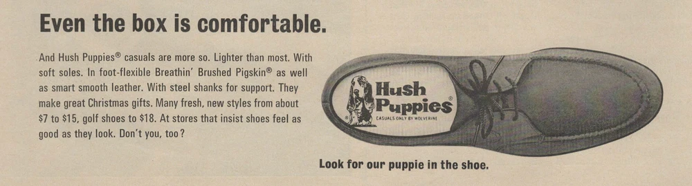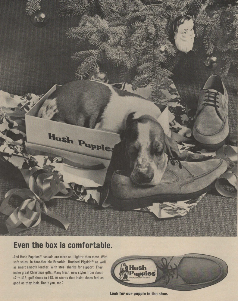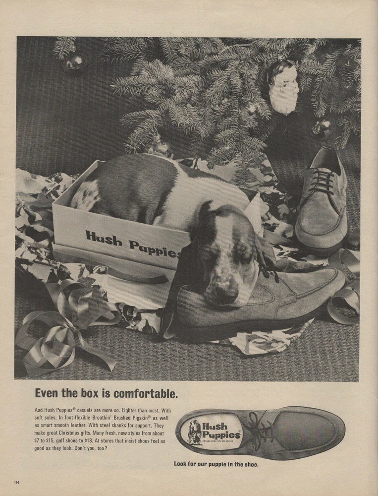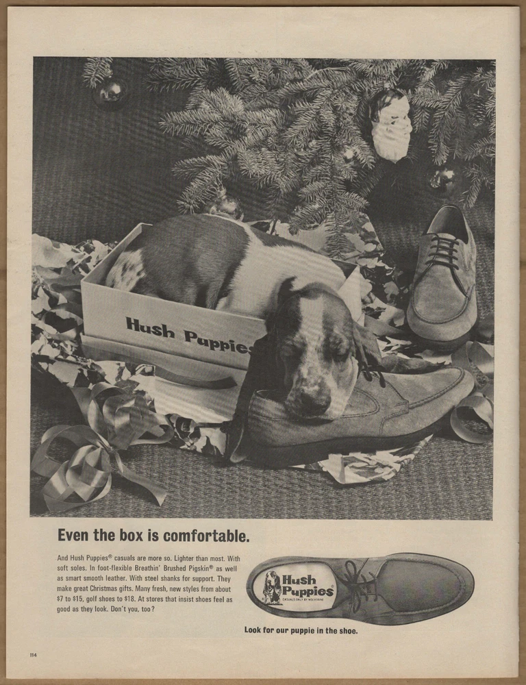 1968 Christmas Hush Puppies Shoes Vintage Print Ad Basset Hound Puppy Under Tree This original print ad was carefully removed from an out-of-print magazine published in 1968 The ad is approximately: 10.5 "x 13.5" This ad is in good condition, although there could be some slightly rough edges, or faint creases just from normal handling over the years. Any flaws would be very mild if there are any at all. Any ads with flaws should be barley noticeable or can be completely covered or almost unnoticeable if it's framed. I only sell print ads that look great unframed or framed and would put it on display in my own home! Please see photos for more details and if you have any questions or would like more photos please let me know! Vintage/Antique print ads can make us feel very nostalgic, which can make us crave our past, or life from a "simpler" time, which can make us feel emotional, certain ads can be very sentimental for many people. Advertisements are collected by many people like art lovers, educators', interior designers, and avid lovers of history. The ads draw people to it by its beautiful artwork, photography, historical content, famous people, events, buildings, nature, animals, fashion, technology, war, or fascinating economic, political, social issues, or controversies of that time period. There are ads that are bizarre or even offensive by today's standards. There are also fun ads with humor or comics or even ads that aren't supposed to be humorous but are to us now like quack medicine ads with questionable medical advice and claim strange and some outlandish cures or treatments for all sorts of ailments like colds, coughs, dental ailments, skin problems, psychological problems, addiction, many diseases and cancers, hair and weight loss issues and many many more! Vintage/Antique ads c an bring character to wherever you display it and they are great conversation starters too!!! It's also pretty neat to own a decorative piece of our history that you can show off in your home, office or to add to your collection! Shipping, Packaging, and Pricing: The shipping used for all ads is Ground Advantage through USPS which includes tracking. I offer FREE SHIPPING with the purchase of 2 or more print ads. Add the print ads you would like to purchase to your shopping cart and it will automatically adjust your shipping to free shipping!!! All prints are carefully removed from the vintage publication it was originally in and placed in a resealable acid-free crystal clear protective sleeve with a durable cardboard backboard (each backboard is 2.5-3mm thick), and is then put in a stay flat rigid mailer, and of course I add the "DO NOT BEND" stickers which are stuck on the front and the back of the mailer so it can't be missed! Please "follow" my store to support my small business and to receive notifications for any upcoming sales or discounts! THANKS FOR VISITING MY STORE! PLEASE STOP BY AGAIN, NEW ITEMS ARE ADDED ON A REGULAR BASIS! !!