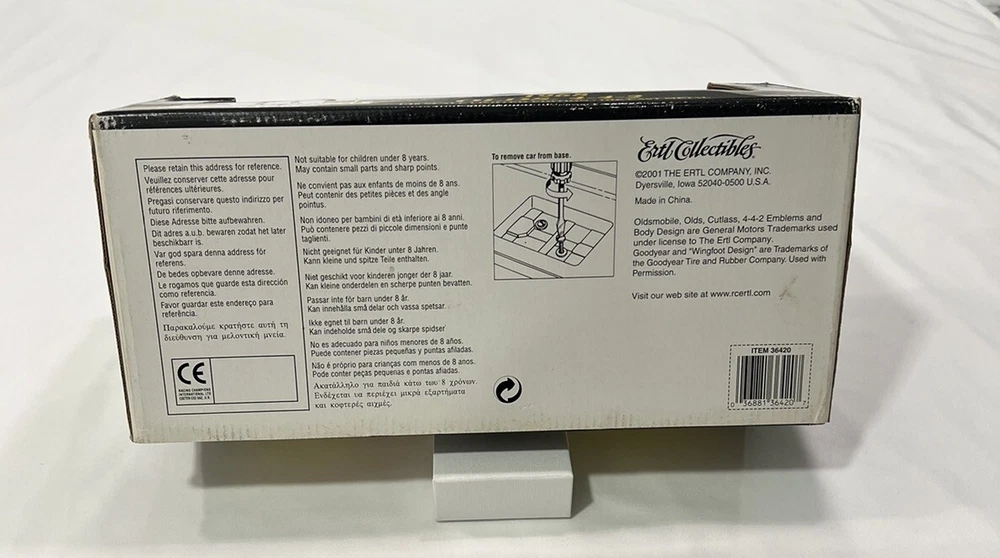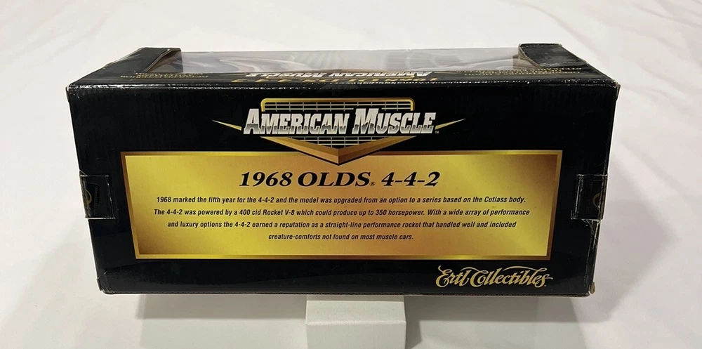 Series:ERTL American MuscleVehicle Make:OldsmobileYear of Manufacture:2001Character Family:Classic CarsVehicle Type:CarBrand:ErtlModel:Oldsmobile 442Material:DiecastMPN:36420Autographed:NoScale:1:18Color:BlueGender:Boys & GirlsCountry/Region of Manufacture:ChinaAge Level:8-11 Years, 12-16 Years, 17 Years & UpTheme:Classic CarsCustomized:NoVehicle Year:1968Recommended Age Range:8+gtin13:036881364207UPC:036881364207