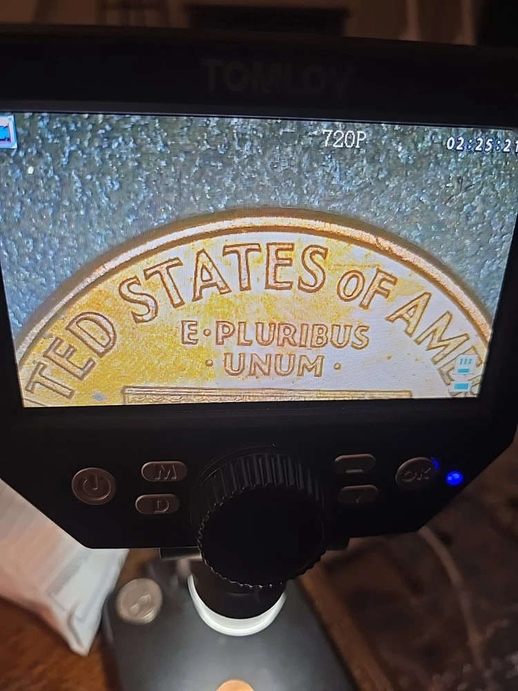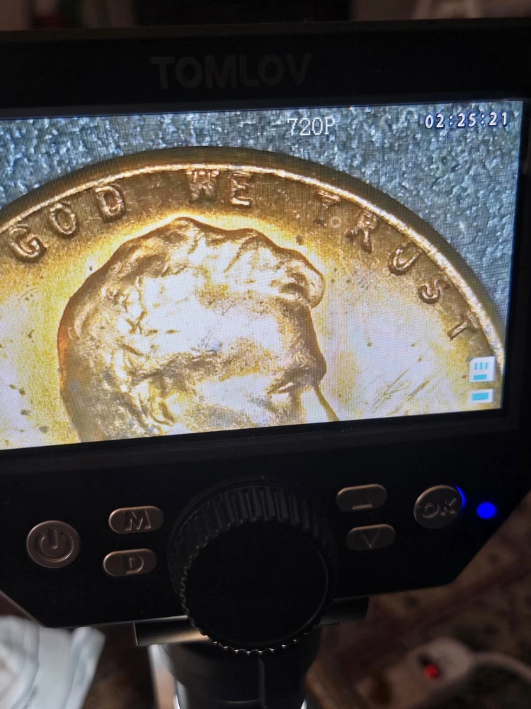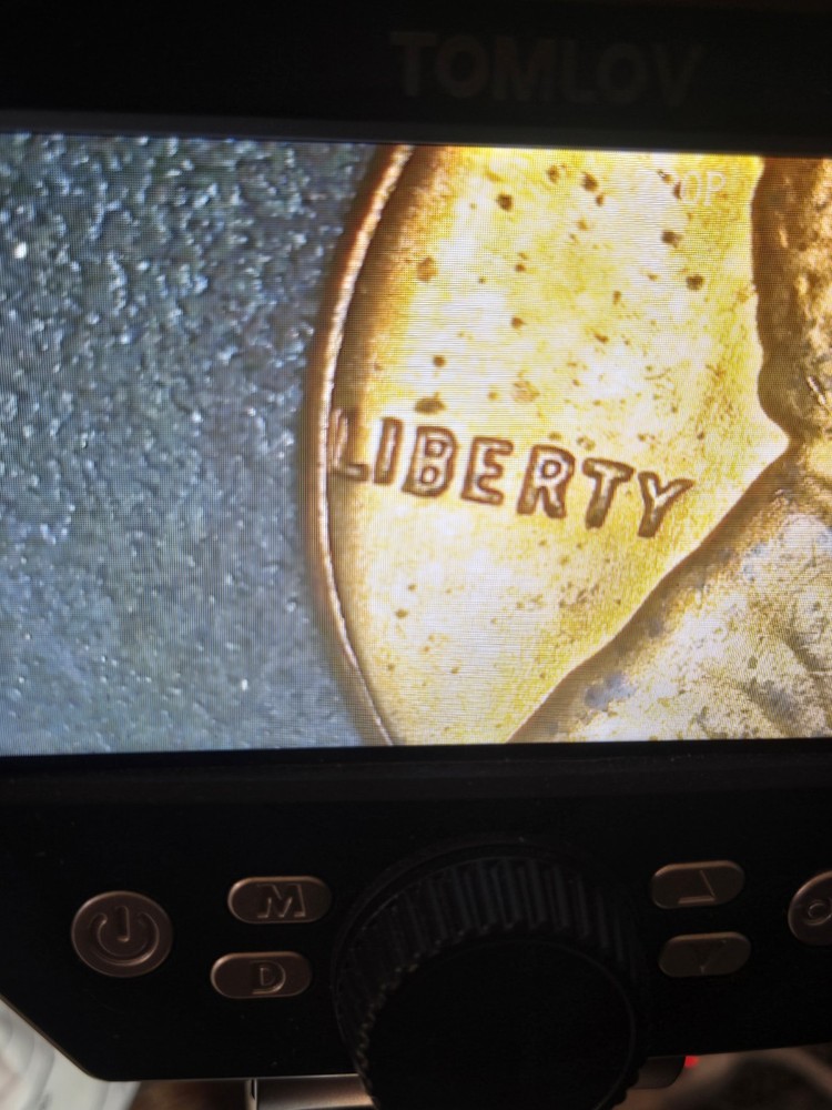 Doubling on the l in liberty, the l is on the edge of coin, in god we trust is also on the edge. There's Doubling on the n in in , the w in we and the coin also has a sharp raised edge, you can tell from the back that it is a off center strike as well from the thick rim edge to skinny at the bottom,