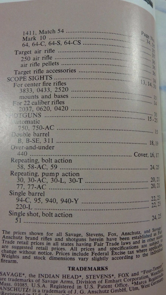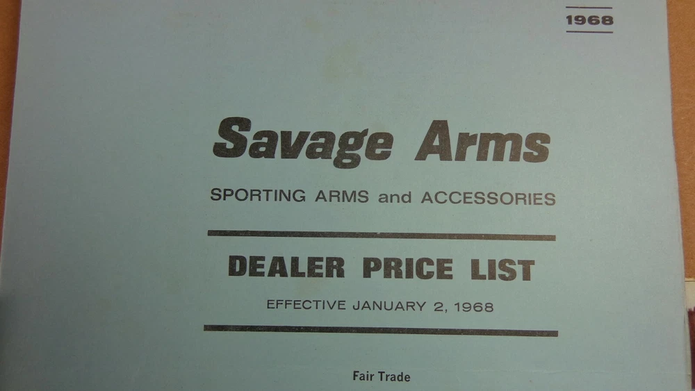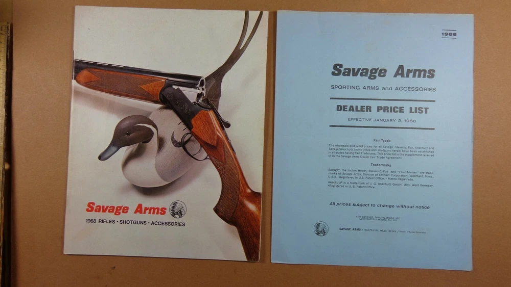1968 SAVAGE Anschutz STEVENS CATALOG ARMS RIFLES SHOTGUNS DEALER/RETAIL PRICING 1968 Savage Anschutz STEVENS Arms rifles, shotguns and accessories catalog. 36 pages, see photos. Prices are listed. 4 PAGE DEALER/RETAIL PRICING GOOD CONDITION - SHOWS SOME WEAR AND USE G61