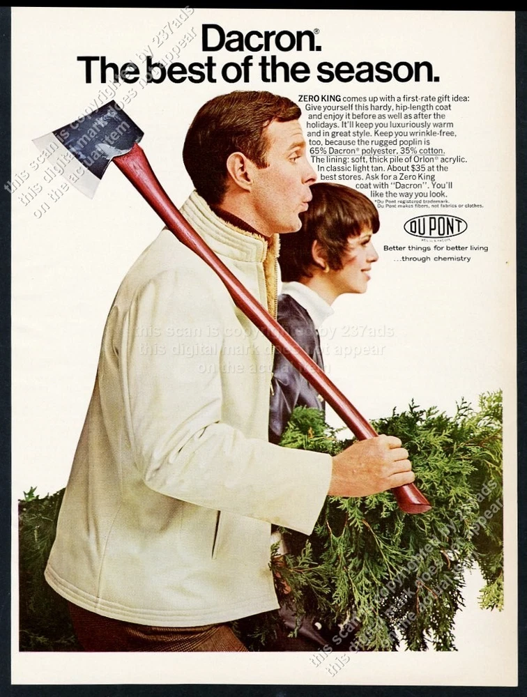 This is an original 1968 print ad for DuPont Dacron! It measures approximately 13" x 9.75" overall, has no stains or tears, comes from a dry, high-altitude, smoke-free environment, and is strictly graded "Very Fine". This vintage ad is not any kind of later reproduction, photocopy or reprint (most ads were published at one time only, and never commercially reproduced). An unusual and distinctive piece for your frame. THANK YOU for the opportunity to earn your business. Thank you for helping us celebrate our 19TH YEAR on ebay! Watch for our special 19% off sales through the year. t237DDD 326253 We ship worldwide. We will combine as many items in one package as you want, to save shipping costs. Buy 10 or more items and the shipping is FREE. Use the ebay shopping cart so that there is only one payment, please. We ship six days every week, and if your payment arrives before Noon Mountain Time, your package goes out that same day. Our custom-made shipping tubes (33% thicker than standard USPS/office supply store shipping tubes, and bearing our distinctive cat graphic design!) work perfectly for most items, unless the item is too thick or is of the fold-out type; those will need to be shipped flat. All items which are shipped flat come with a clear sleeve and a nice, substantial backing board, not a cheap flimsy one. Who Buys Our Vintage Ads? Over the past 19 years on ebay, our customers have included museums, galleries, national archives, concert halls, corporate archives, universities, TV and film production companies, private collectors and others in over 100 countries on all seven continents-- yes, including a person stationed in Antarctica. If you've seen print ads used in set decoration for TV shows or films, you've likely seen our ads. If you've looked in major store display windows in New York at Christmastime, you've likely seen our ads. We've been lucky enough to have worked with some of the best in a wide variety of industries, and are looking forward to working with you too. Please let us know if you have any questions prior to purchase. Powered by SixBit's eCommerce Solution