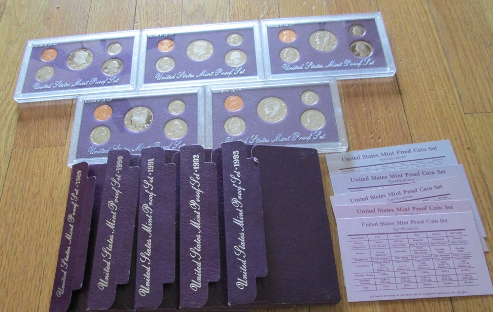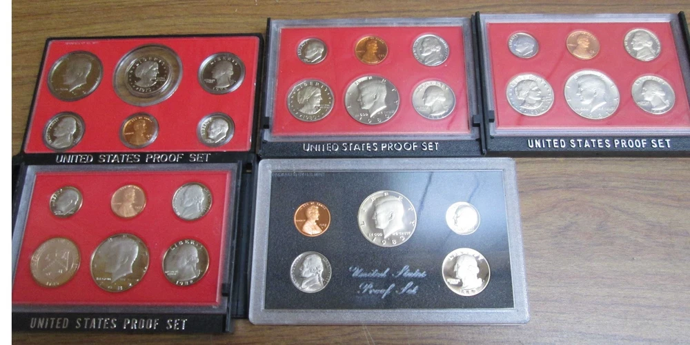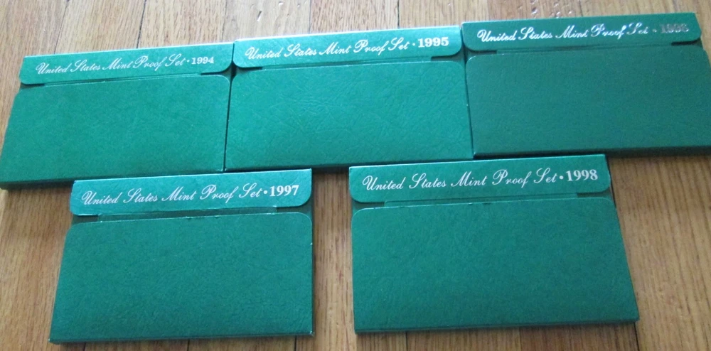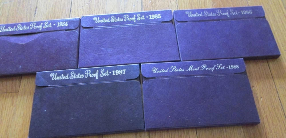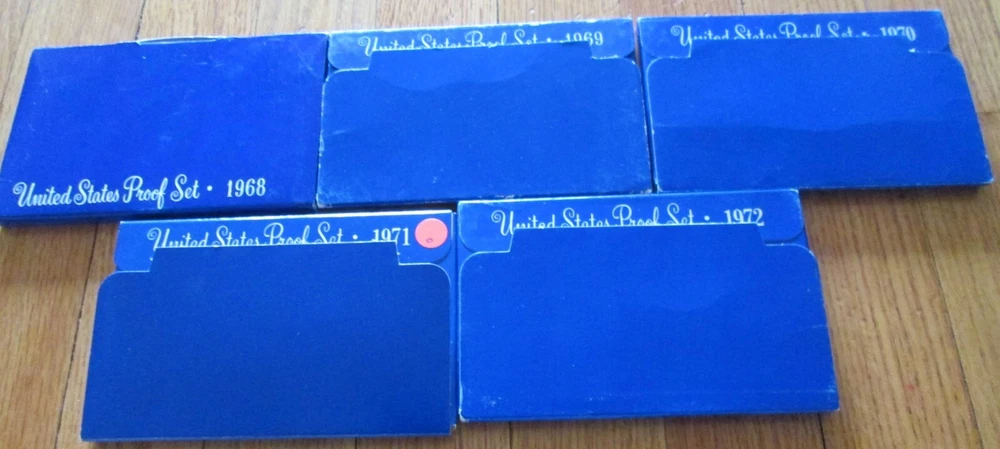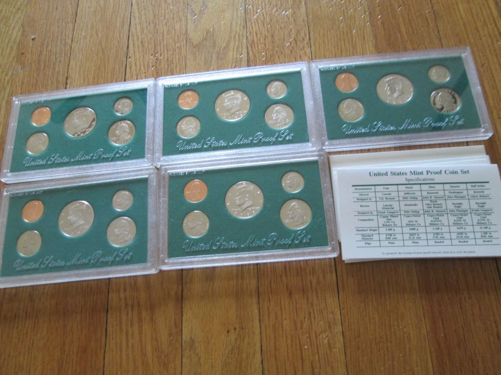 1968 to 1998 Proof Sets U.S. Mint 31 Proof set San Francisco Mint Box & COA My best selling sets, The coins in the Pictures are not the exact coins that you will receive. They are however a good representation of what you will receive. COA is always included when issued by US Mint. Issued from 1986 to date 1968 5 coin Proof Set. 1969 5 coin Proof Set. 1970 5 coin Proof Set. 1971 5 coin Proof Set. 1972 5 coin Proof Set. 1973 6 coin Proof Set. 1974 6 coin Proof Set. 1975 6 coin Proof Set. 1976 6 coin Proof Set. 1977 6 coin Proof Set. 1978 6 coin Proof Set. 1979 6 coin Proof Set. 1980 6 coin Proof Set. 1981 6 coin Proof Set. 1982 5 coin Proof Set.+ medal 1983 5 coin Proof Set. 1984 5 coin Proof Set. 1985 5 coin Proof Set. 1986 5 coin Proof Set. 1987 5 coin Proof Set. 1988 5 coin Proof Set. 1989 5 coin Proof Set. 1990 5 coin Proof Set. 1991 5 coin Proof Set. 1992 5 coin Proof Set. 1993 5 coin Proof Set. 1994 5 coin Proof Set. 1995 5 coin Proof Set. 1996 5 coin Proof Set. 1997 5 coin Proof Set. 1998 5 coin Proof Set.