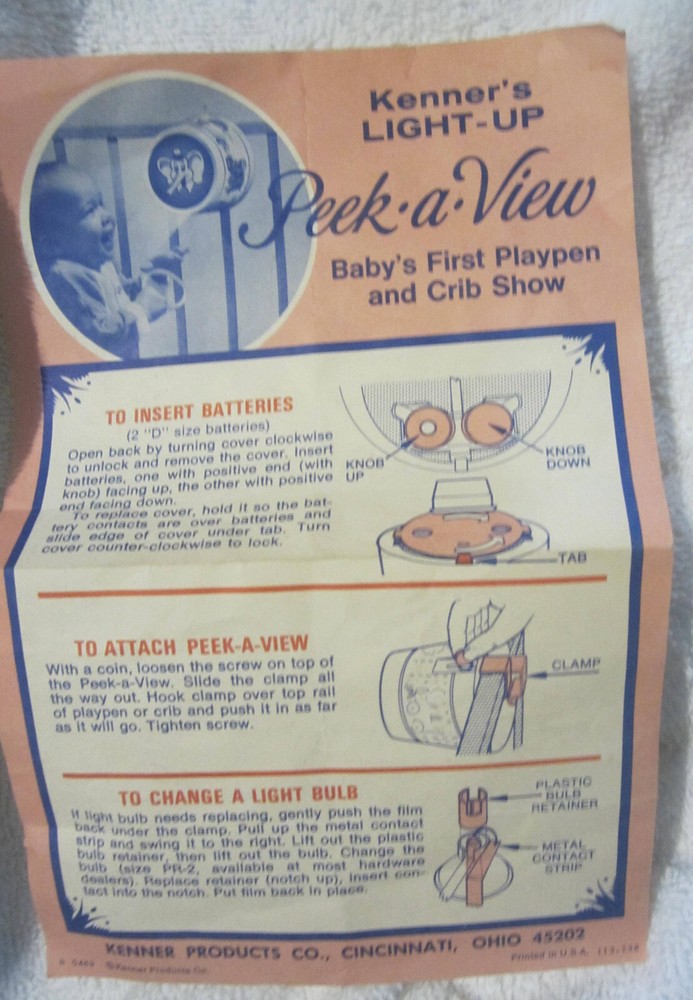 This vintage 1969 Kenner Peek a View pull toy is a fun retro find for collectors! It comes with the original box and instructions (some writing on back), though the light doesn’t work—just needs a new bulb. The pull mechanism still advances the strip, so it’s an easy fix. Sold as-is, but great potential for restoration. Perfect for nostalgic toy lovers! Multiple purchases can save on shipping—check photos for details.