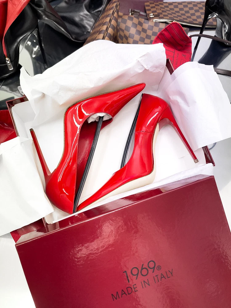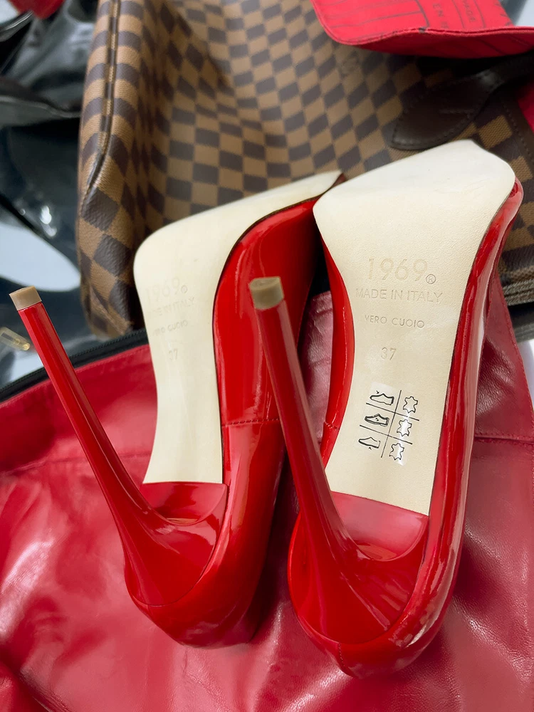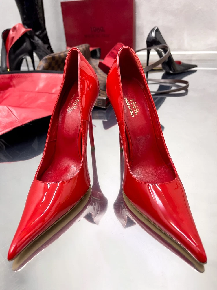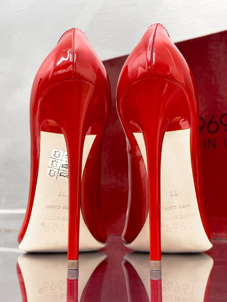 Heel Style: Stiletto Outsole Material: Leather MPN: D68 1969 ART LX1969 Vernice Rosso Upper Material: Patent Leather EU Shoe Size: 35 36 37 38 39 40 41 42 43 44 45 Lining Material: Leather Heel Height: Ultra High (4 in & Higher) Color: Red Style: Pump Department: Women Shoe Width: Standard Features: Comfort, Handmade, Lightweight, Limited Edition Type: Heel Country of Origin: Italy Character: Barbie, Black Cat, Black Panther, Black Widow Model: Famous Z Style Extreme Pointy Stiletto US Shoe Size: 5-14 Insole Material: Leather Season: Fall, Spring, Summer, Winter Brand: 1969 Made in Italy Toe Shape: Pointed Toe Occasion: Business, Casual, Formal, Party/Cocktail, Wedding Theme: Anime, Art, Clubwear, Dance, Disco, Festive, Logo, Money, Movie, Music, Outdoor, Retro, Rock, Stars, USA Closure: Slip On