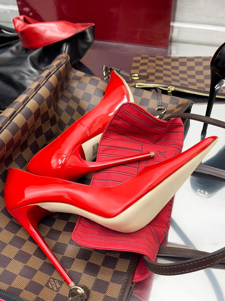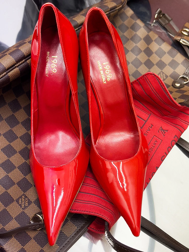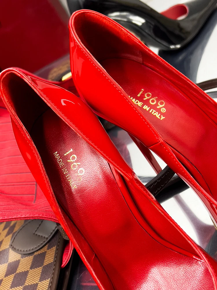 1969 Made in Italy Patent Leather High Heels Iconic D68 Pointy Pumps Red 35-45