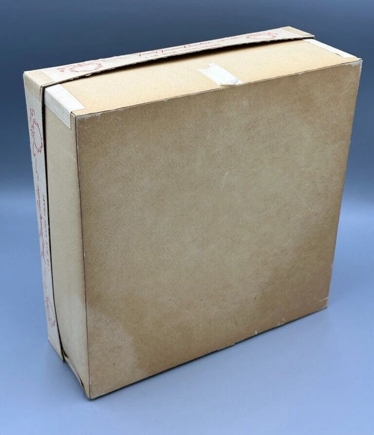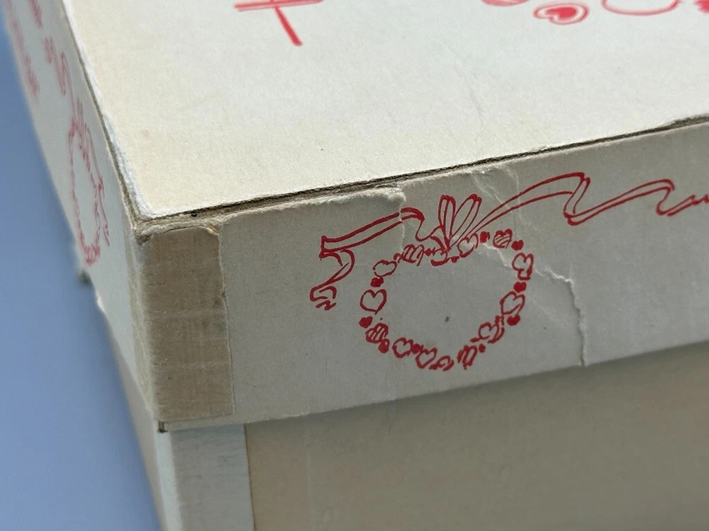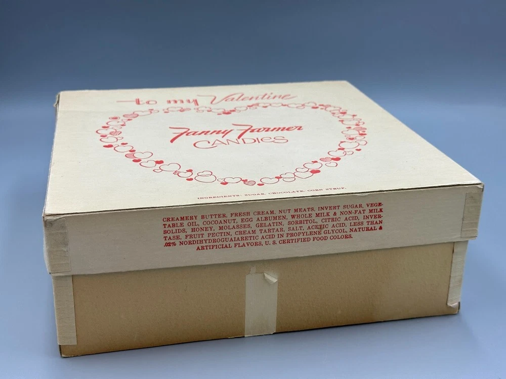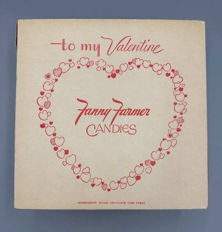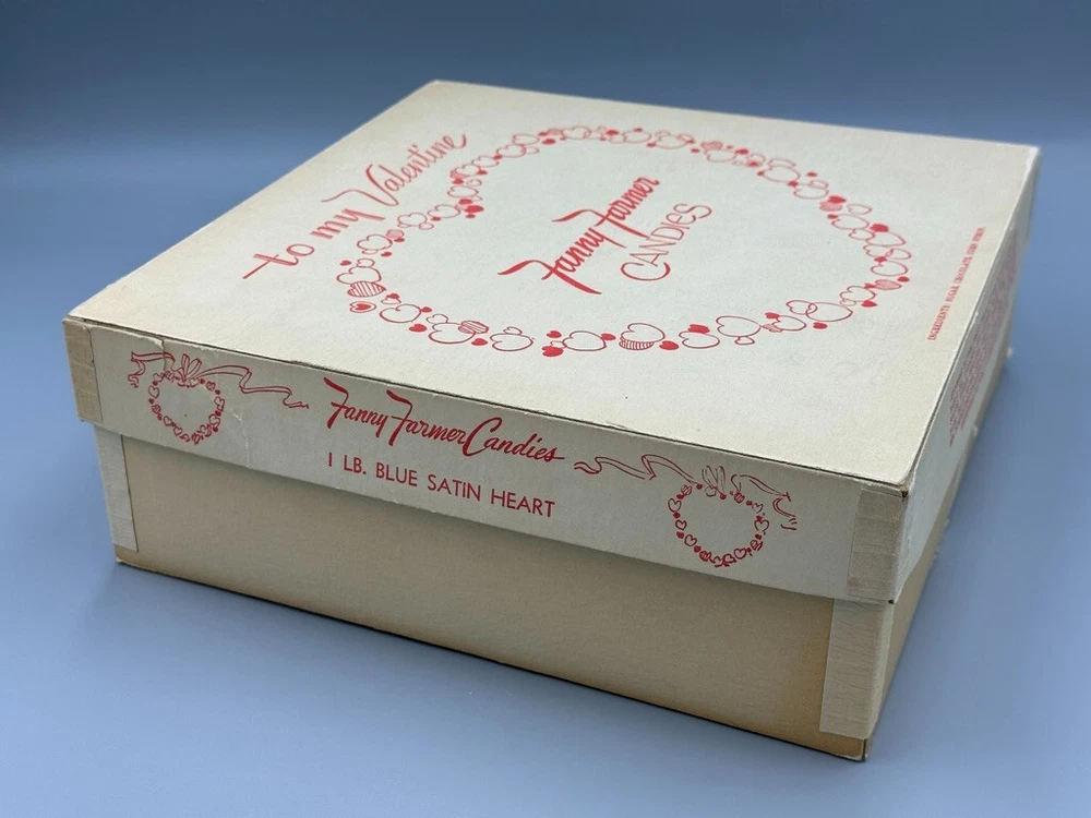 Vintage original 1969 Fanny Farmer 1 lb. pink Satin and Rose Heart Valentine chocolate candy box with outer box for blue satin heart. Heart is 9 1/4 by 10 inches. Light soil and wear. A hanger is taped to the back of the box. 1969 inked on the back of the box. The outer box was intended for a blue satin heart and contains a pink satin heart. Please see photos for condition. Guaranteed old and original.