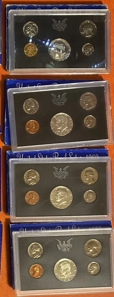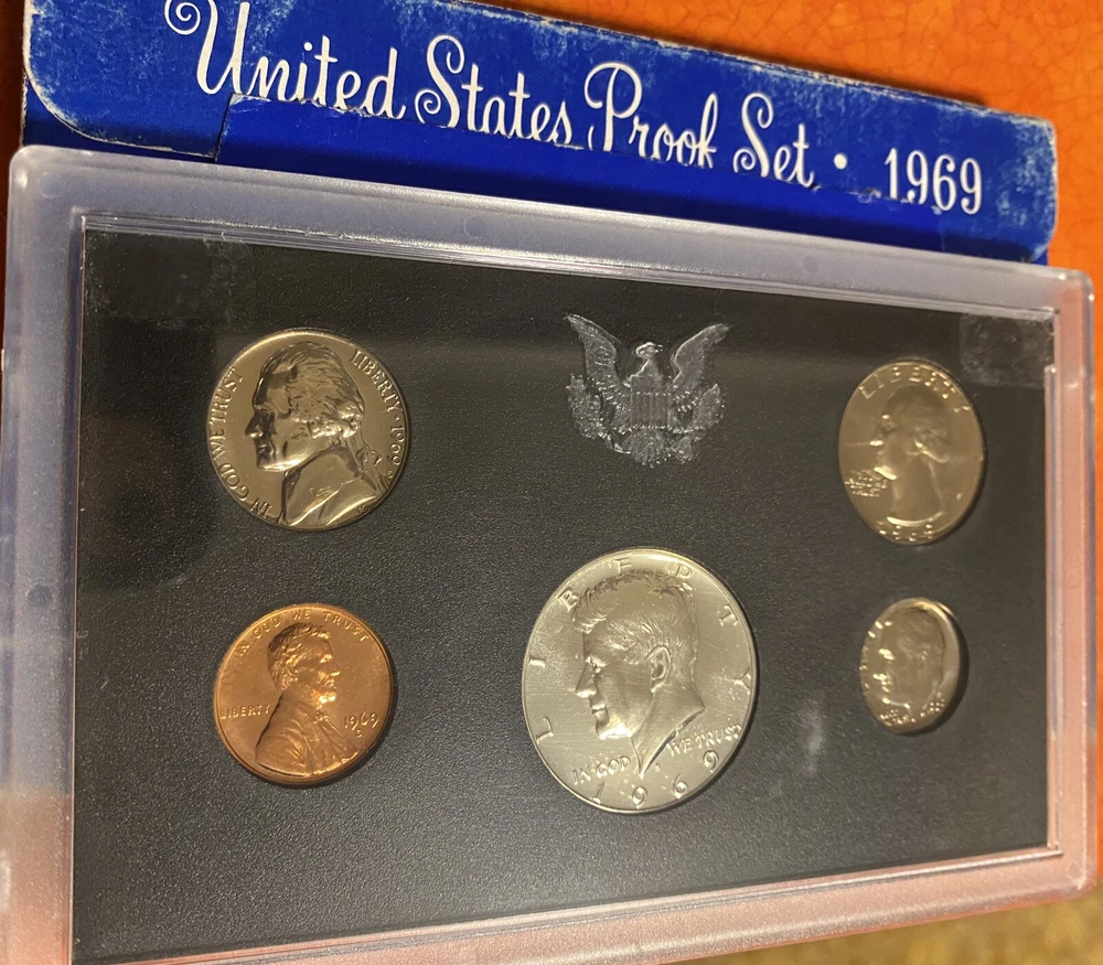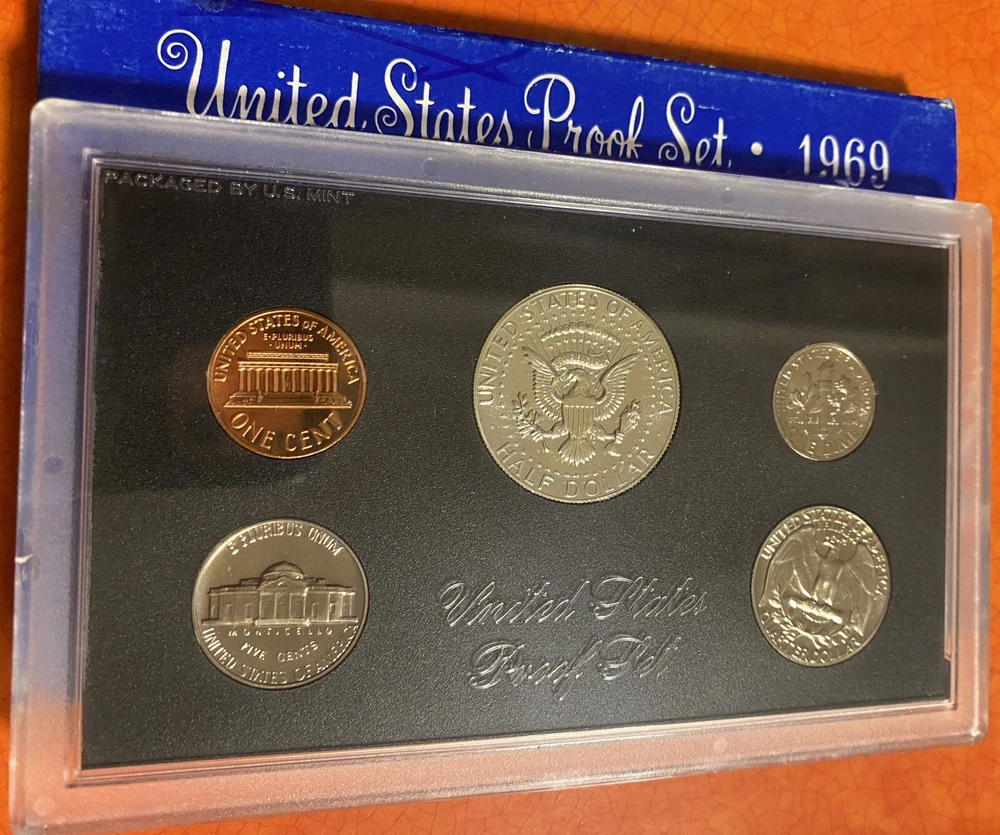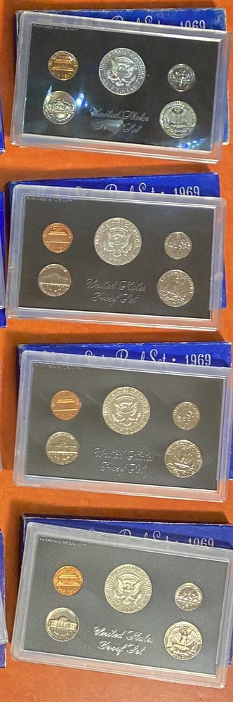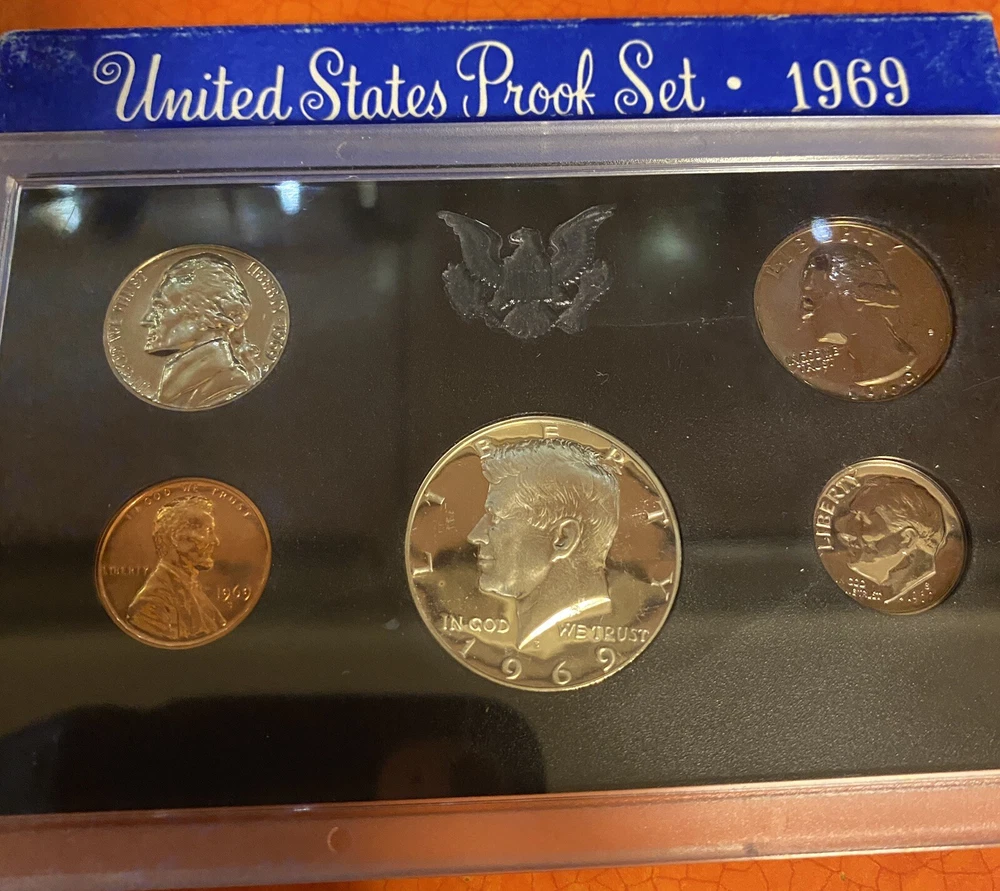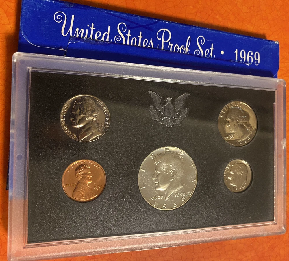 You are buying a random one of four 1969 U.S. Proof Coin sets. There are 4 in the pictures and you will receive 1 of these sets randomly. These are the sets available for purchase. These are 1969 U.S. Proof Coin Sets minted in San Fransisco. These coins are preserved from the mint and beautiful for display or collection. The nickels have good steps and there is toning on some of the coins. This 1969 U.S. Proof Coin Set is a must-have for any coin collector. The set includes beautiful coins that were minted in San Francisco, United States. The coins have not been circulated. Add it to your collection today and experience the beauty and rarity of these stunning coins.