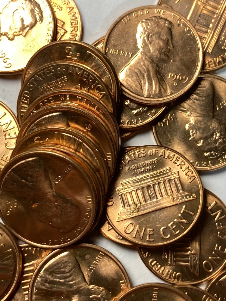 You are purchasing a full roll, 50 coins, of 1969-D Lincoln memorial cents that are in BU condition. The photo shows a typical roll of the rolls that I am selling. I have several of these rolls to sell.