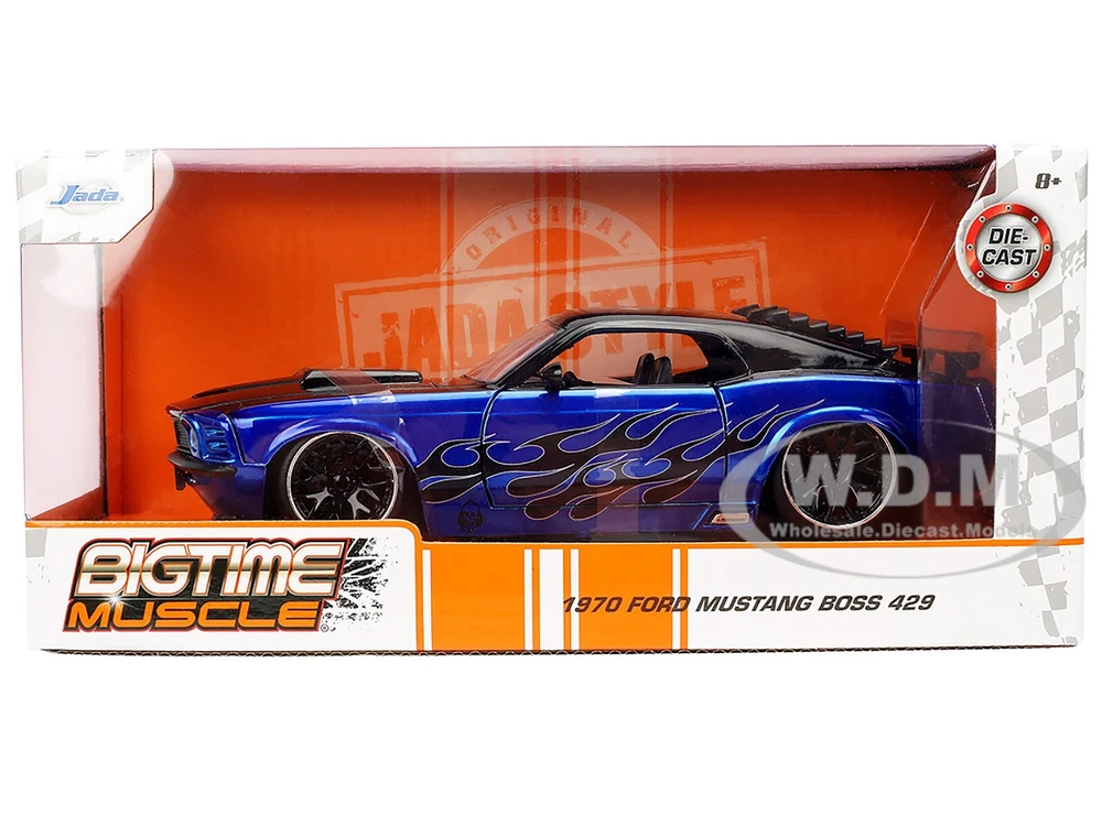 SAVE WHEN BUYING MORE!!! Buy as many items as you wish and we will ship them for one low shipping cost to 48 continental U.S. states physical addresses. Example: Shipping cost for most 1/24 scale items is $10, for 1/18 scale items is $12. If you use Add to cart button and purchase 5 items in 1/24 scale and 5 items in 1/18 scale, your shipping cost will be only $12 for 10 items. In order to request combined shipping for signed in desktop users: Please use Add to cart button for desired items, click Go to cart button and press Request total from us before paying and we will send combined shipping invoice shortly. If checking out as a Guest or using a mobile version, please use Add to cart button then click Go to cart button , press Go to checkout button, request extra shipping refund in Message to seller section and finalize payment by pressing Confirm and pay button. We will refund extra shipping cost shortly. DESCRIPTION: Brand new 1/24 scale diecast car model of 1970 Ford Mustang Boss 429 Black and Blue Metallic with Flames "Bigtime Muscle" Series die cast model car by Jada. Brand new box. Real rubber tires. Officially licensed product. Opening hood, doors and trunk. Manufacturer's original unopened packaging. Made of diecast metal with some plastic parts. Detailed interior, exterior, engine compartment. Dimensions approximately L-8.5, W-3.25, H-2.25 inches. PAYMENT INSTRUCTIONS: We gladly accept paypal. Tracking info is free upon request. SHIPPING INFO: We do combine shipping cost for two or more items purchased. Please check shipping and payment section. In order to receive combined invoice for multiple purchases, please purchase items and let us know when you are done shopping, so we can send you one combined invoice. We can only combine shipping cost if items paid in one transaction. Dear Valued Customer! We appreciate your business. BUY WITH CONFIDENCE Fast Order Fulfillment 99% of orders are shipped within 24 hours or sooner. Simple Return Policy Thirty days simple returns. More than 10 Years of Experience Family owned and operated, we’ve had the experience of selling online for more than 10 years. Satisfaction Guaranteed! Our feedback says it all. And now, we hope to have the chance to prove we are the best to you! Competitive Pricing and Unrivaled Selection We are the number one direct distributor of diecast model cars in the USA, so we are able to provide very competitive pricing. Our stock selection is unrivaled with over 4,500 different items. Quality Shipping & Handling We package all our orders with care using bubble wrap to protect models from damage in transit. Each model that has a fragile window box is covered with carton protection. Excellent Customer Service Our customer service is second to none with thousands of returning, satisfied customers from all over the world.