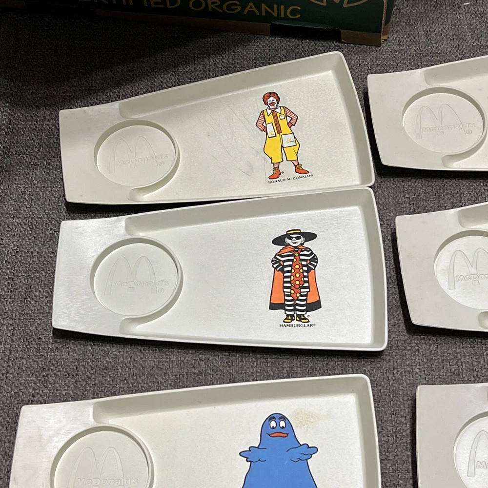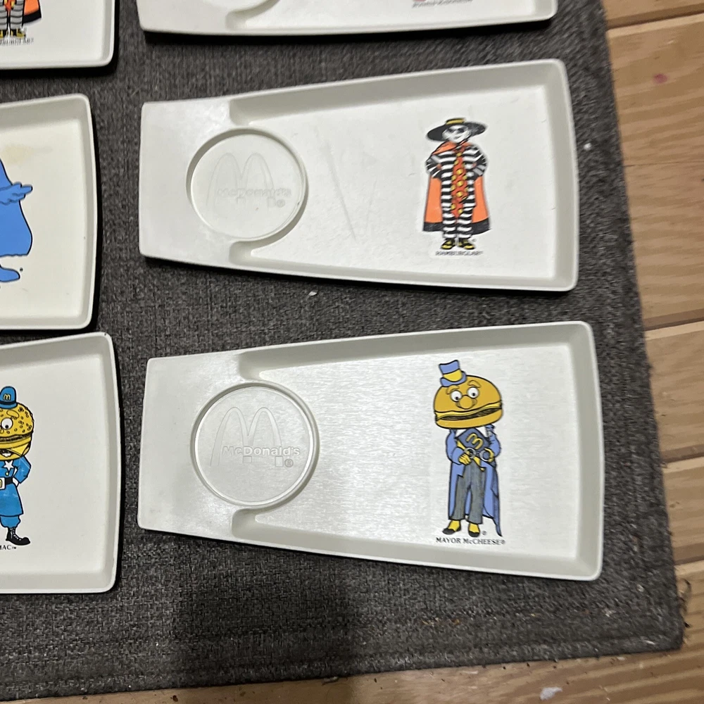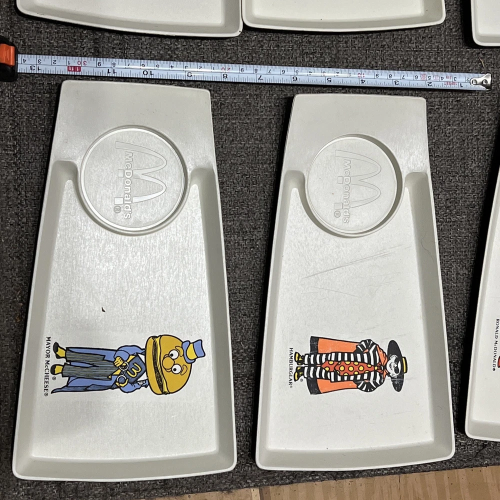 1970's, McDonald's ,Plastic Kids Meal Trays/Plates (Set of 8), Scarce /Vintage. Photos show everything. Rulers for size reference All are in good to great condition. With some knife scratches from everyday breakfast uses. Been stored away for decades in smoke-free, pet-free sun-free, mold-free environment McDonald Characters on trays/plates: Ronald mcDonalds (x3) grimace Hamburlgar (x2) Big Mac Mayor McCheese
