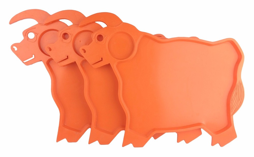 17" from nose to tail, 12" from born base to hoof. 5/8" deep. Room for plenty of bbq or whatever, and a drink too! You get 3 of them.