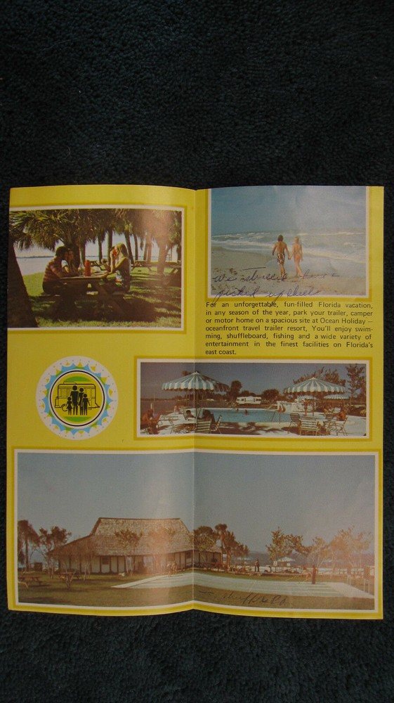 Here is a wonderful original 1970's Ocean Holiday Travel Trailer Resort folder for your Disney collection! It is in good condition with creases, edge wear, edge tears, folding, corner folds, scuffing, indentations, stains, fading, tears and some marks. It still has bright colors. Item is sold “as is”. I try to describe my items as accurately as possible. Please email me with any questions before bidding. NO INTERNATIONAL BIDDERS PLEASE Winning bidder to pay by PayPal within 3 days after the end of the auction. Buyer must have a confirmed PayPal shipping address. Shipment will take place after receipt of cleared payment. I will package your item carefully for shipment. THANK YOU FOR LOOKING! PLEASE LOOK FOR MY OTHER DISNEYLAND AUCTIONS! I AM ALWAYS HAPPY TO COMBINE ITEMS FOR SHIPMENT TO SAVE YOU MONEY