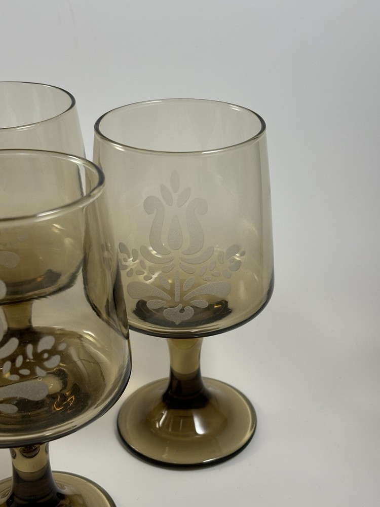1970s Pfaltzgraff Village Brown Glass Pedestal Wine Glass Set of 8