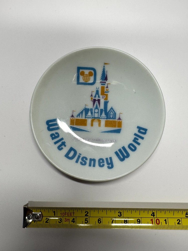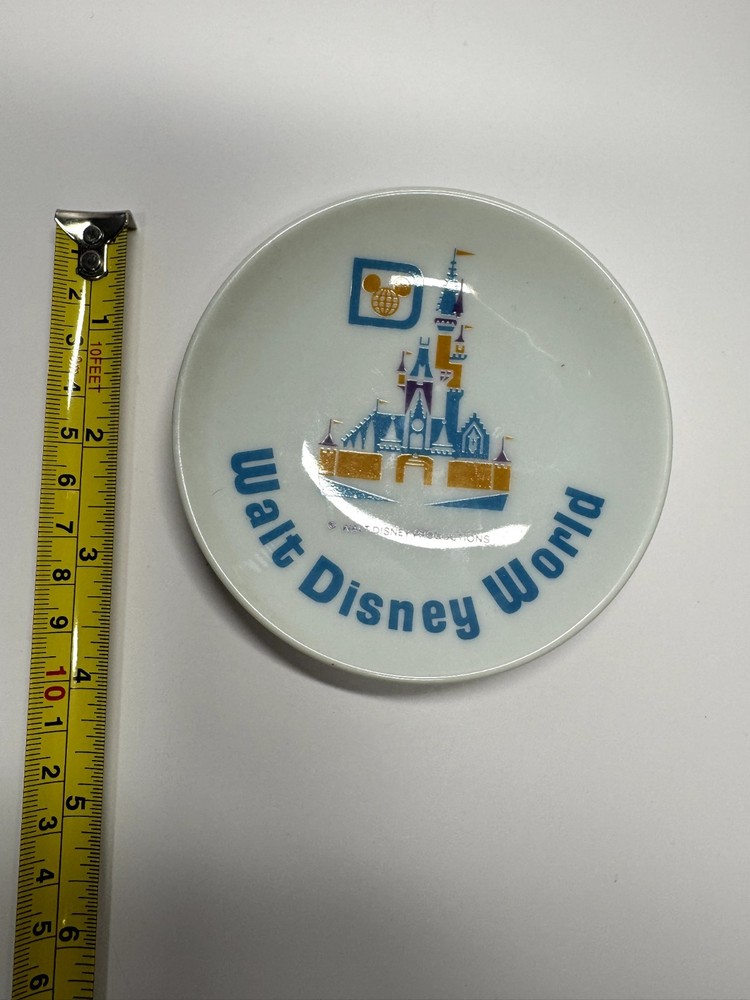 Add a piece of Disney history to your collection with this charming vintage souvenir plate from Walt Disney World! This collectible plate dates back to the 1970s-early 1980s, proudly bearing the “Walt Disney Productions” mark used prior to 1986. Features a colorful image of Cinderella Castle with the classic globe and Mickey ears logo. Perfect for Disney collectors or fans of retro theme park memorabilia. Official Walt Disney Productions item Approx. 4.25" diameter Ceramic construction with printed design Bright colors and classic artwork Gently pre-owned vintage condition; no chips or cracks Great display piece for any Disney fan or collector Shipping: Ships securely with tracking and careful packaging to ensure safe delivery. Bring home a nostalgic treasure from the most magical place on Earth!