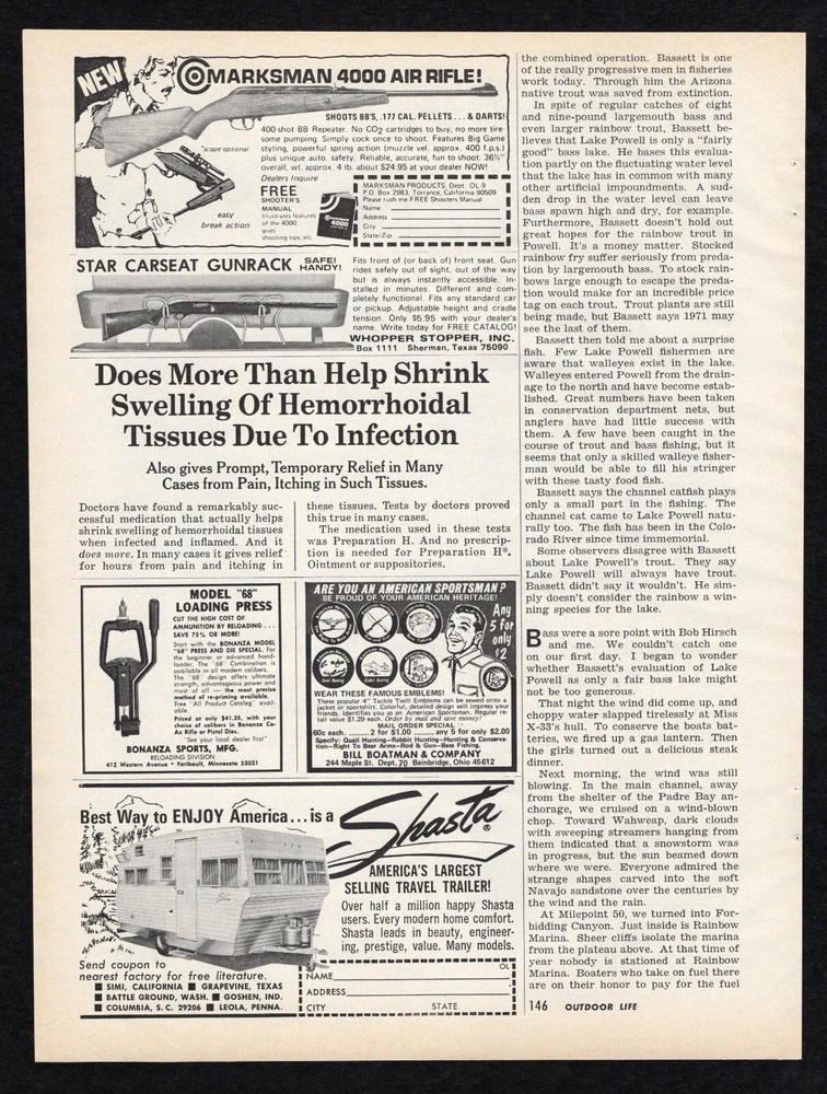 19 71 Lee Work Clothes Union Made Tough Coverall Looks Good Lasts Hard Print Ad Suitable for Framing This is an original Ad removed from its original magazine. Ad Description/Company Name : Side 1 : Lee Union-Made U.S.A. Work Clothes – Made to put in a hard day’s work. ...working clean in your tough Lee Union-Alls. Side 2 : Multiple Ads Publication Date: 19 71 September Publication Name: Outdoor Life Magazine Size: Approx 8 ¼” x 1 1 ” Condition : Used. These are original pages from original magazines. They are very old, and usually stored in less-than-perfect environments. F oxing, fading, discoloration are common and present to some degree . Also staple holes, corner folds, edge damage, creases, ripples, scuffs , smudges and other imperfections are normal . Pages may show pressure marks from production or years of storage . Images are NOT matted or framed. I only trim the spine edge , leaving the other three sides untouched. The images are the EXACT SAME PAGE BEING SOLD, AS IS . PLEASE EXAMINE CLOSELY AND MAKE YOUR OWN JUDGMENT. Your satisfaction guaranteed. If you have any questions or qualms, feel free to ask! Magazine ads are shipped in: 2-mil Clear Polypropylene Magazine Bags with a white backer board, in a Rigid Mailer, in a sealed Poly Mailer, marked "Handle With Care, Do not Bend" and shipped USPS. We DO combine shipping for multiple purchases!