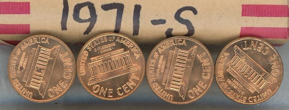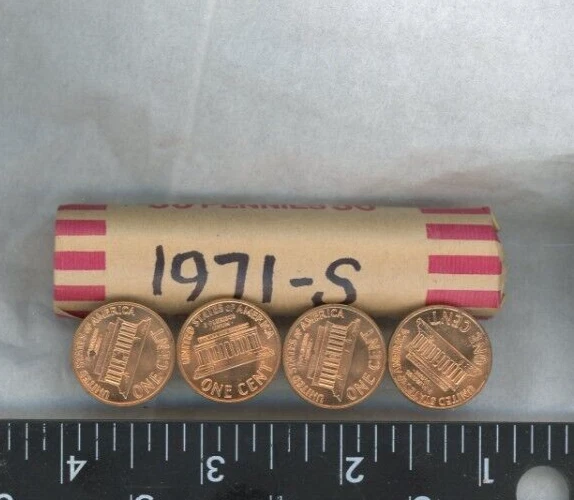 1971-S Lincoln Memorial Cents BU/UNC Roll-50 Coins in Tubes