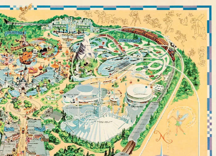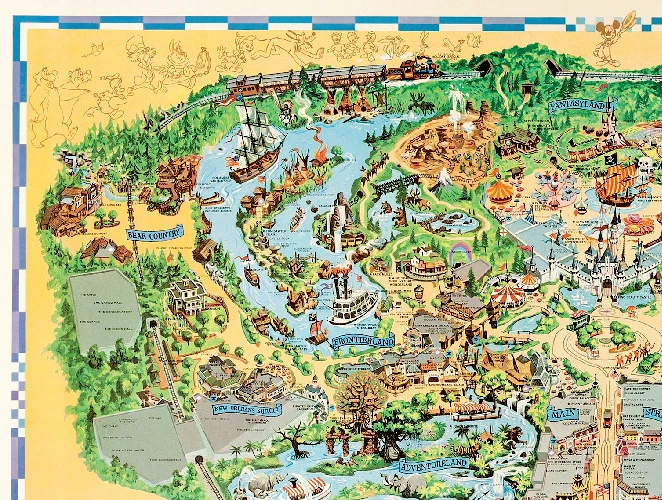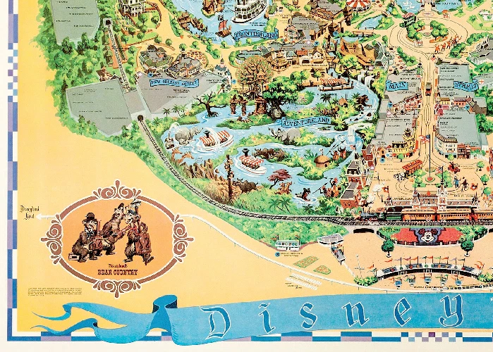 1972 Disney Disneyland Fun Map Poster 13x19 Country Bear Jamboree SATIN