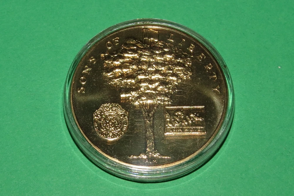 UP FOR AUCTION IS THIS SONS OF LIBERTY, AMERICAN REVOLUTION COMMEMORATIVE COIN. EXCELLENT CONDITION AND DETAIL. COMPOSITION OFCOIN IS NOT KNOWN. ADD TO YOUR COLLECTION. SEE ALL MY OTHER TRIBUTE COINS FOR SALE. SHIPPING IS FREE. THANKS FOR LOOKING!