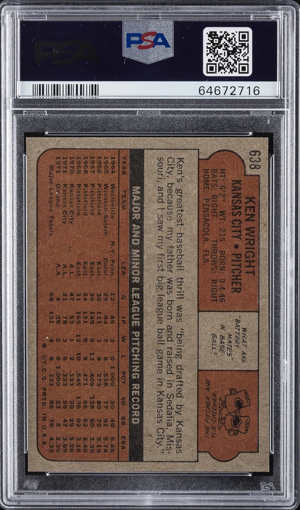 For Sale is a Sharp Looking High Number 1972 Topps #638 Ken Wright Kansas City Royals Baseball Card as pictured above. The card you will receive is the one in the photos. All Cards I sell were part of My Father's Collection and are all stored inside top loaders unless otherwise noted. Please review the provided photos and feel free to ask any questions you might have. I have attempted to provide you with a good look at the card including the corners of same so you can determine the condition of the card as you see it. If you desire more photos, please let me know prior to the end of the auction. Please feel free to check out my other Auctions that I am also listing. I will be happy to combine shipping if you win/purchase multiple auctions. Each additional card won will be charged $.50 up to a maximum charge of $6.50. My goal with shipping is to simply cover the costs of shipping and listing. My policy is that I will send out invoices on a nightly basis should you win additional auctions with combined shipping discounts provided for additional auctions won. You can pay whenever you have completed your bidding for the week (M-F)I will require payment on a weekly basis unless other arrangements have been made. Thanks for your interest and Good Luck!
