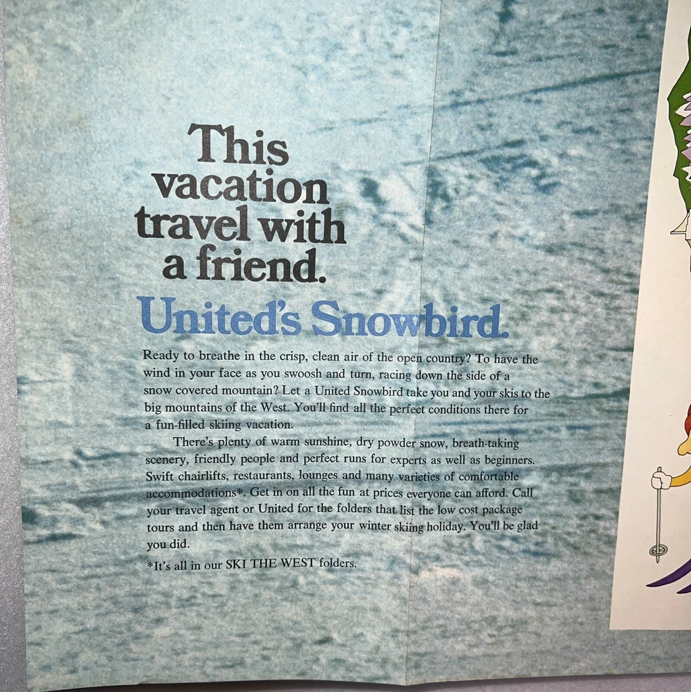 1972 United Air Lines "The Friendly Skies Air Atlas" Full Color US Map w Ski The West Poster on back - 21x34 inches Item: United Air Lines Air Atlas Full Color US Map w Ski West Poster on bk Year: 1972 Location: United States Measurements: Folded: approx. 6"x10.5" Open: approx. 21"x34" Notable Features: Full Color early 70s era Many interesting sections both Poster and Map Check out our other interesting items !