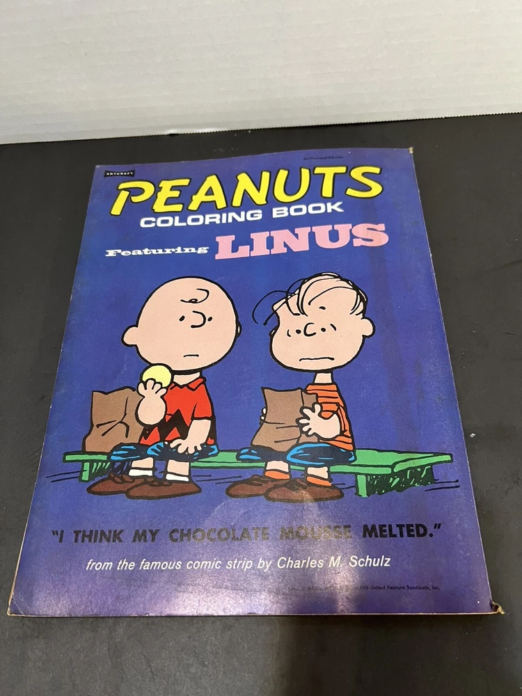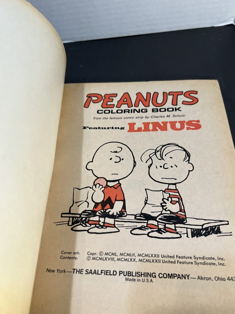 1972 PEANUTS Coloring Book Featuring LINUS Unused from 1972 Never colored in but after 50+ years there is a bit of shelf wear. Please see photos. Shlf-1