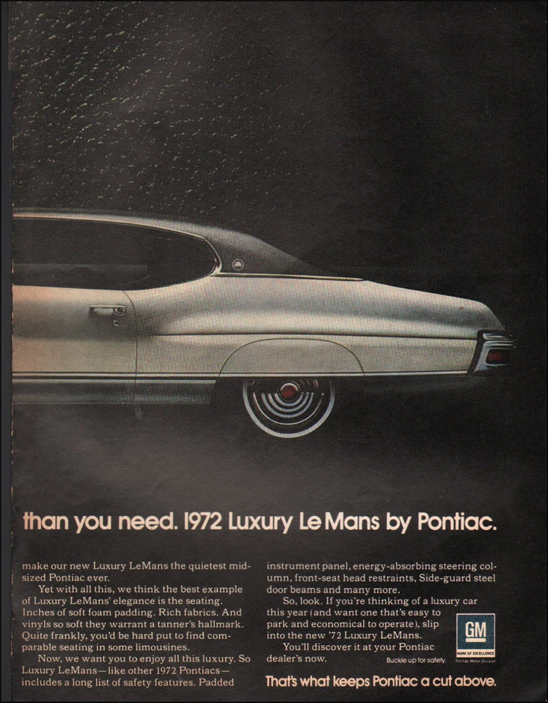 1972 Vintage ad Luxury Le Mans Pontiac retro car Auto Vehicle 2-pgs 06/19/24
