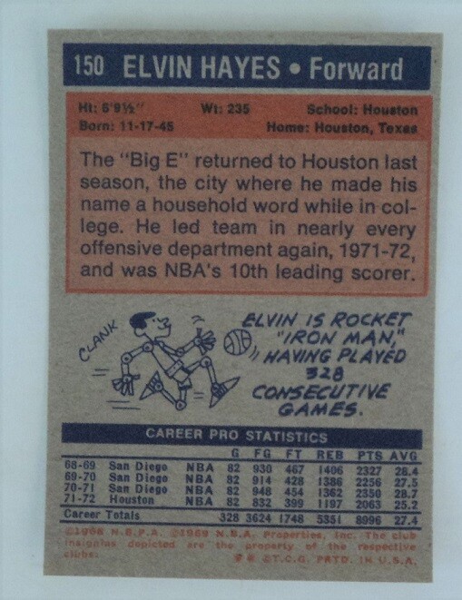 1972-73 Topps Basketball # 150 Elvin Hayes -- Super Sharp - GEM MINT - *** Be sure to check out our other old MINT Topps Basketball cards now in our Ebay Store ***
