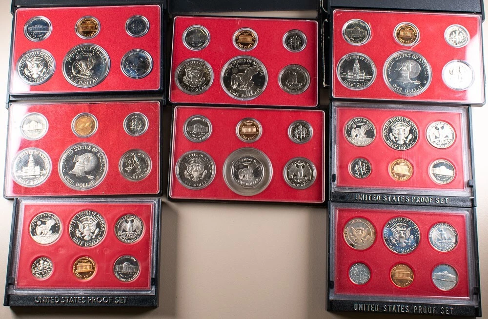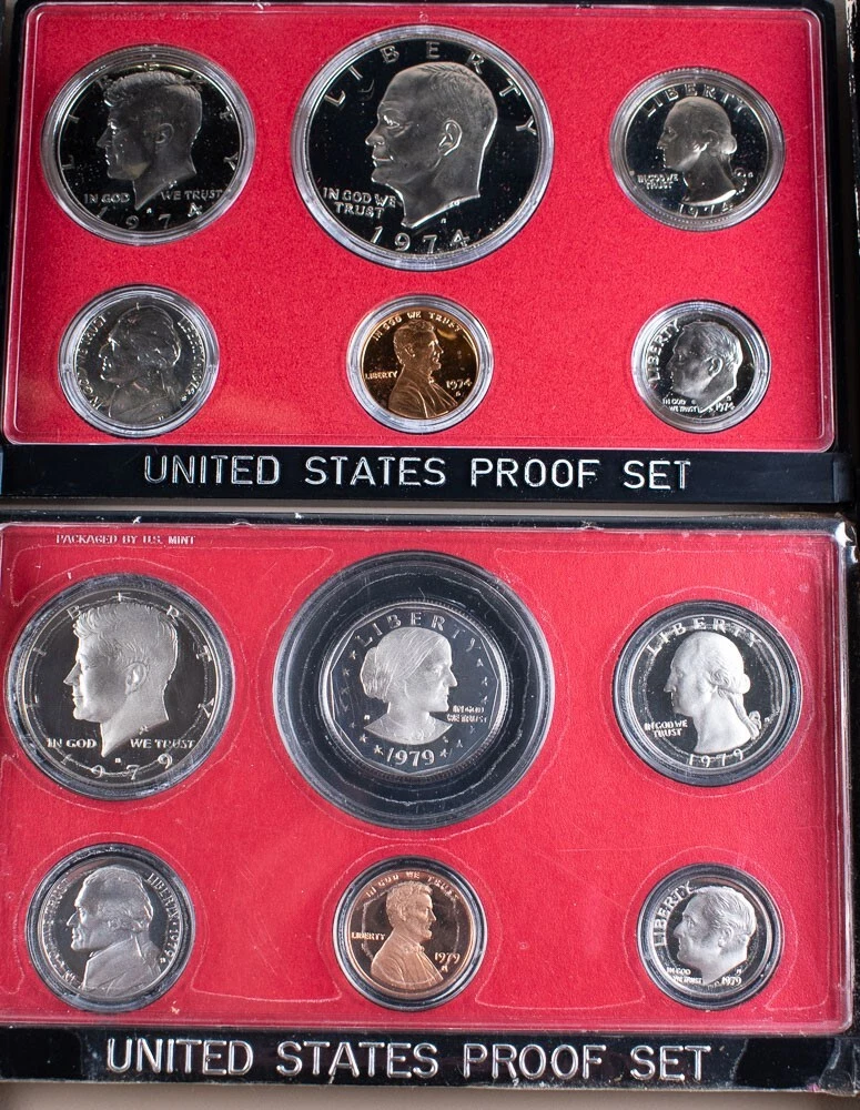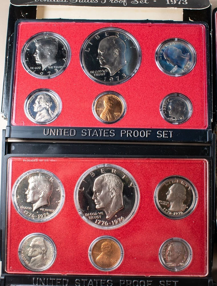 1973 74' 75' 76' 79' 80' 81' 82' U.S. Mint Proof Sets Lot of 8 1973 74' 75' 76' 79' 80' 81' 82' U.S. Mint Proof Sets Lot of 8 A few of these are missing the boxes and some cases are chipped but coins are good See photos to further evaluate condition . About HCC Rare Coins Howard C. Cook, Jr, founded HCC in 1991, and ever since our company has prided itself in being a rare coin management company that offers customers the deep experience our staff of professionals has to offer. HCC Inc. is the only company that offers free written coin and currency appraisals to bank customers and the community at large inside banking offices throughout Indiana, Illinois, Kentucky, Michigan, New York, Ohio, Pennsylvania, and West Virginia. These appraisals are where we purchase many of the great collector coins we have for auction here on eBay. HCC Rare Coins is a member of the American Numismatic Association, Professional Numismatists Guild (Howard C. Cook PNG member), PCGS, NGC and CAC grading services, as well as a member of the Better Business Bureau with an A+ rating and the Toledo Regional Chamber of Commerce. When you do business with HCC you are dealing with professionals. It is our goal to make sure that our customers are satisfied. Providing exceptional customer service is at the top of our list. We hope that you to enjoy doing business with us and come back again and again. Payment Items must be paid within 7 business days of an auction or buy-it-now’s close. eBay payments. We also accept Master Card, Visa, Discover & American Express by phone. Call our office toll free at 1-800-422-4405 to pay by credit card between 9:00 a.m. and 5:00 p.m. (eastern time) Monday through Friday – we are closed on Saturday and Sunday. Send payment to P.O. Box 790, Maumee, OH 43537 Shipping ( Domestic (U.S.) Only) We ship fully insured through USPS. Items less than 16 oz. will ship via First Class Mail and anything 16 oz. or over will ship via Priority Mail. Both methods will provide a tracking number, most high value items with come with signature tracking (over $350). Items are shipped Monday through Friday, within 1 business day from the date the payment clears. Combined Shipping A Combined Shipping Discount is offered for any additional items won within a one week period. Customers will be charged an additional 50¢ per item to the highest shipping price listed (Example - you purchase several small single coins that are at the rate of $4.50 each and a larger/more expensive item at $10.50 - you'll be charged the $10.50 + .50 cents for each additonal item). Please wait for an adjusted invoice BEFORE sending your payment to take advantage of this great offer. Return Policy We want you to be 100% satisfied with your purchase. For that reason, you may return any item for a full refund, less shipping and handling, within 14 days from receipt (P.O. Box 790, Maumee, OH 43537). Please contact us to let us know you will be returning the coin. A 10% restocking fee may be charged for certain returns in which we have incurred a loss, ( unless we have made an error or the item is damaged in the shipping process ). Disagreeing with the grade does not mean that the item doesn't match the description or listing—claiming so is a misuse of eBay returns. Contact Us If you have any questions regarding our policies, your order or anything else, please message us or call us toll free at 1-800-422-4405 Auctions We post new auctions nightly, Sunday through Thursday, and encourage you to continually check our new listings – with all no reserve auctions (posted from 9:00 P.M. to 10:00 P.M. eastern time). We offer combined shipping on additional items (see our shipping policies above). Grading Please note that grading is subjective. Our numismatists have had a lot of training and are very good at what they do. Still you are advised to use your own judgment and purchase the coin based on the provided photos as well as our descriptions. While our grades are the best guidelines we can offer, they are just our opinion. Thank you and Happy Bidding! Powered by SixBit's eCommerce Solution