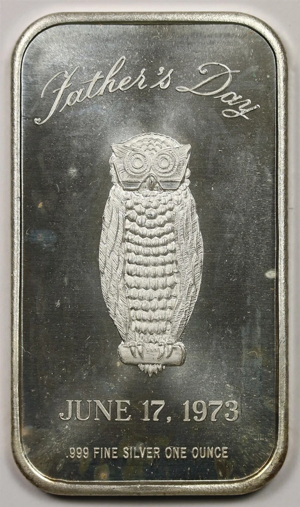 1973 Fathers Day Owl Madison Mint .999 Fine Silver Art Bar - 1 Troy oz