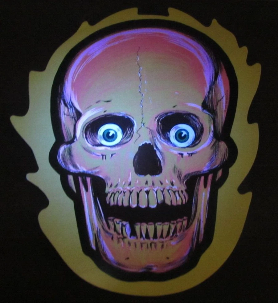 Add a spooky touch to your Halloween decor with this vintage 1973 Beistle die-cut skull. The skull is made of glossy paper and features a multicolor pattern with skeletons and skulls. It is suitable for hanging on a wall, door, or window, and measures 11 inches in height and 9 inches in width. The skull is part of the Halloween collection and has a seasonal theme. It is perfect for collectors and enthusiasts who love to add unique and creepy decorations to their homes. This item is made in the United States and comes in a pack of one.