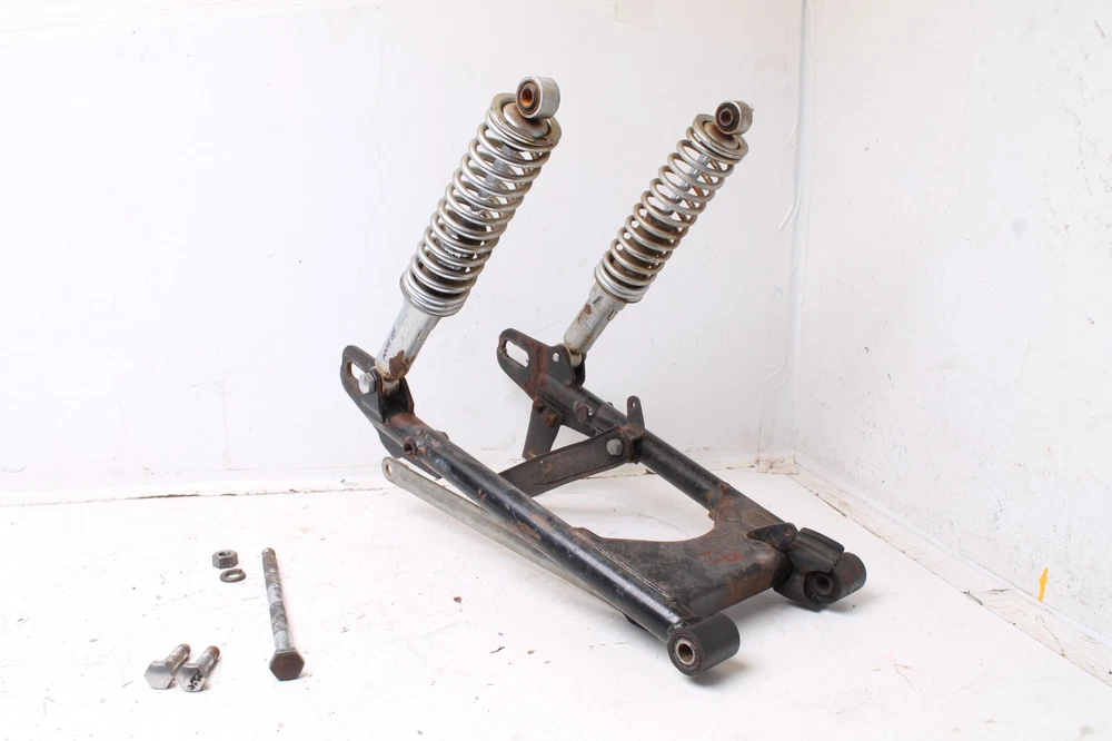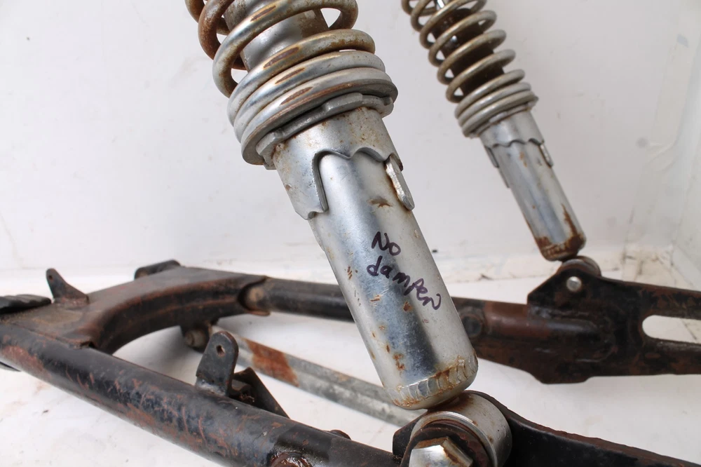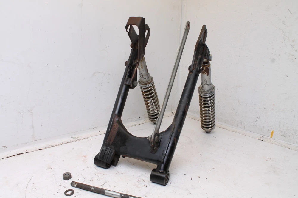 As pictured. Shocks move freely but don't dampen. Good rubber shock and swingarm bushings. Swingarm pivot bolt is slightly bent. Chain wear on the inside of the swingarm and shock. Worn through chain guard marked in yellow. This part is from a 1973 Yamaha LTMX motorcycle. Frame serial# LT2-11897 engine# LT2-01690 Some parts from this LTMX may also fit Yamaha LT3 and LT2. Cross reference part numbers to confirm. Want to make sure this part fits before you order it? We will help you confirm fitment and compatibility! Send us a message or picture with your V.I.N. number (usually stamped into the frame), and we will look up your machine to make sure you get the correct parts! Why Shop With Us? - Quality Parts: We are very experienced and knowledgeable; we work to provide clear pictures and exact descriptions of items. - No Stock Photos: The part you see is the part you will receive. All parts are in stock and ready to ship. - Fast Shipping: Orders will ship out within 24 hours on business days. (Most items ship the same or next day.) Our packaging is secure and professional. - Open Communication: We answer all inquiries quickly and professionally. We can resolve ANY issue. Please message us with any questions or concerns you may have. - Feedback: We strive for Five-Star Feedback on all transactions. If you have any reason to leave negative feedback we ask that you please contact us first and allow us the opportunity to fix any problem there may be. We assure you that we can resolve ANY issue! ©Cycle Part Express SKU: 192 (1973 Yamaha LTMX Motorcycle)