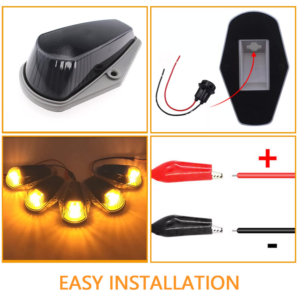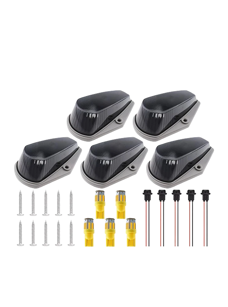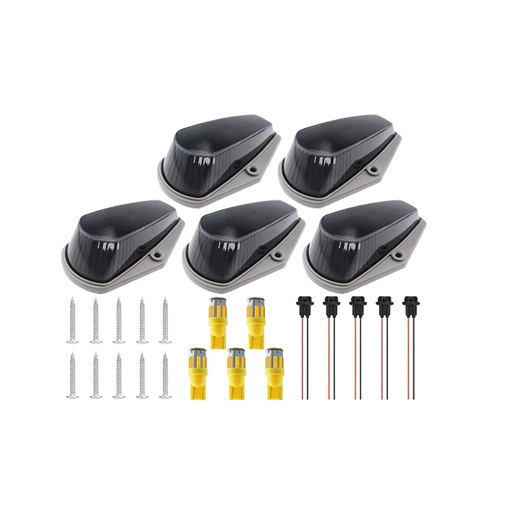 This listing is for one set of 5 pieces front cab roof marker lamps with Smoke lens and 5 pieces Amber LED Bulbs. Simple design for your beautiful and exotic exterior! Application: Roof Cab Marker Clearance Light Covers with Base Housing (Undetachable) Fitment: 1.For 1973 1974 1975 1976 1977 1978 1979 1980 1981 1982 1983 1984 1985 1986 1987 1988 1989 1990 1991 1992 1993 1994 1995 1996 1997 Ford F-150 F-250 F-350 F-Series Super Duty Pickup Trucks 2.Fits on most of 4x4/Off-Road/SUV/Crossover/Jeep/RV/Pickup truck vehicle Part number: For 15442, 8C34-15442-CB, 8C34-15442-AD Attention: 1.Positioning & drilling is needed when installed on other vehicles. 2.You may also need silicone gel or other material to cover the hole. 3.Special care should be taken. DO NOT drill until all positioning is done. Drilling is unnecessary if your vehicle comes with stock roof running lights. 4. Please make sure you can handle all the operation before buying, in case of any hassle. Features: Brand New Cab Roof Running Clearance Marker Light Kit. Comes with high quality Smoke lens and LED lamps. Provide better visibility of your vehicle on the road Manufactured of high quality ABS molded plastic,won't fade from long exposure. Smoke lens to give your car a sporty touch. UV treated and will not fade from prolonged exposure to sunlight and weather elements Enhance visibility during night time, foggy day, heavy rain and snow Direct replacement for OEM factory stock cab marker covers. Perfect fit & No leakage. Neither any cutting, modifying nor wiring is needed. Exactly same as picture ! Comes in 5 pieces ! Can replace most truck/SUV/RV/van's OEM cab roof lights or even be installed as a fresh upgrade. Specification: COVER Brand New Lens Color: Smoke Material: High quality ABS plastic, won't fade from exposure. Size: Same as stock, perfect fit BASE Brand New Size: Same as stock, perfect fit Come with T10 plug base, convenient for modifying & rewiring LED BULBS Light Color: Amber LED Type: 5 Pieces T10 LED Base Type: T10 Quick on/off response and vibration resistant High performance LED, long lifespan, superior illumination & stability Plug and Play Most of LED lights have polarities, please flip them over 180 degree when they do not light up. Note: You may also need silicone gel or other material to cover the hole. Please make sure you can handle all the operation before buying, in case of any hassle. Package Include: 5x Cab marker lights 5x T10 LED bulbs 5x T10 Pre-wired plug socket 10x Screws Other accessories NOT included