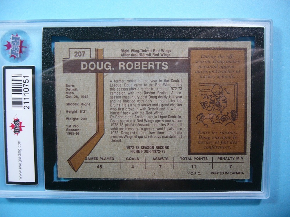 1973/74 O-PEE-CHEE NHL HOCKEY CARD #207 DOUG ROBERTS KSA 10 GEM MINT 73/74 OPC