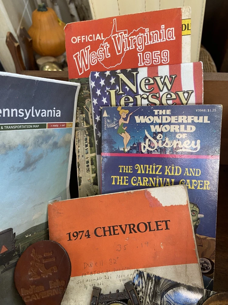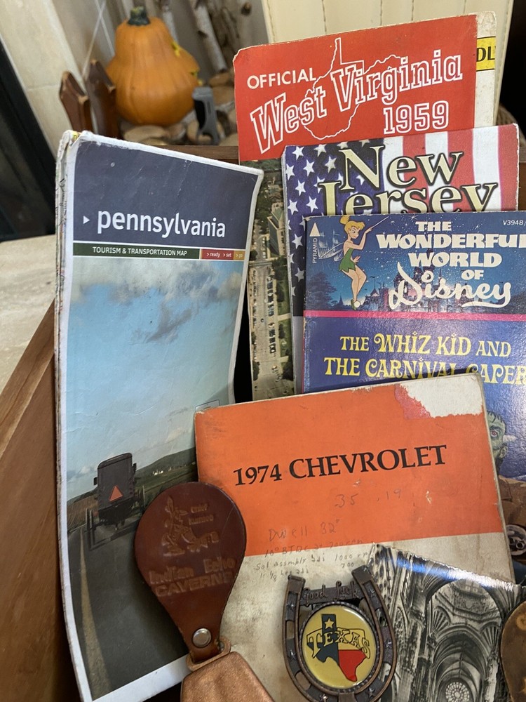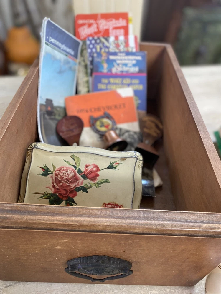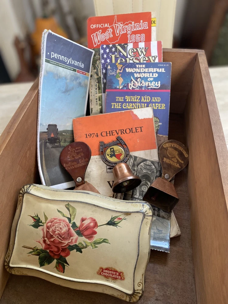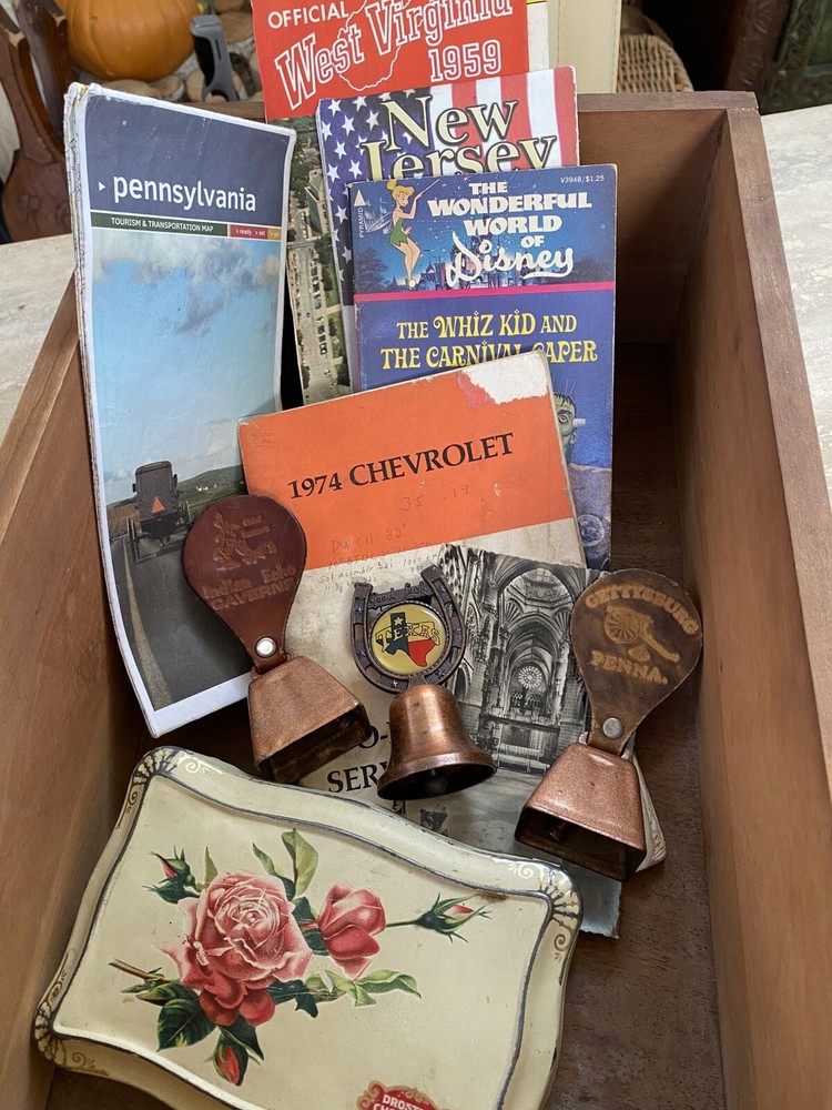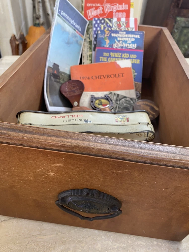 This vintage junk drawer lot features an array of unique items that would be perfect for any collector, mechanic, teacher, or historian. The lot includes a mix of items from various eras and countries, including Disney book and Vtg maps. The theme of the lot is advertising. The lot is made of paper and is a non-standard size. It was manufactured in the United States and features topographical postcards from Virginia. This mixed lot would make a great addition to any collection and is sure to have something for everyone.