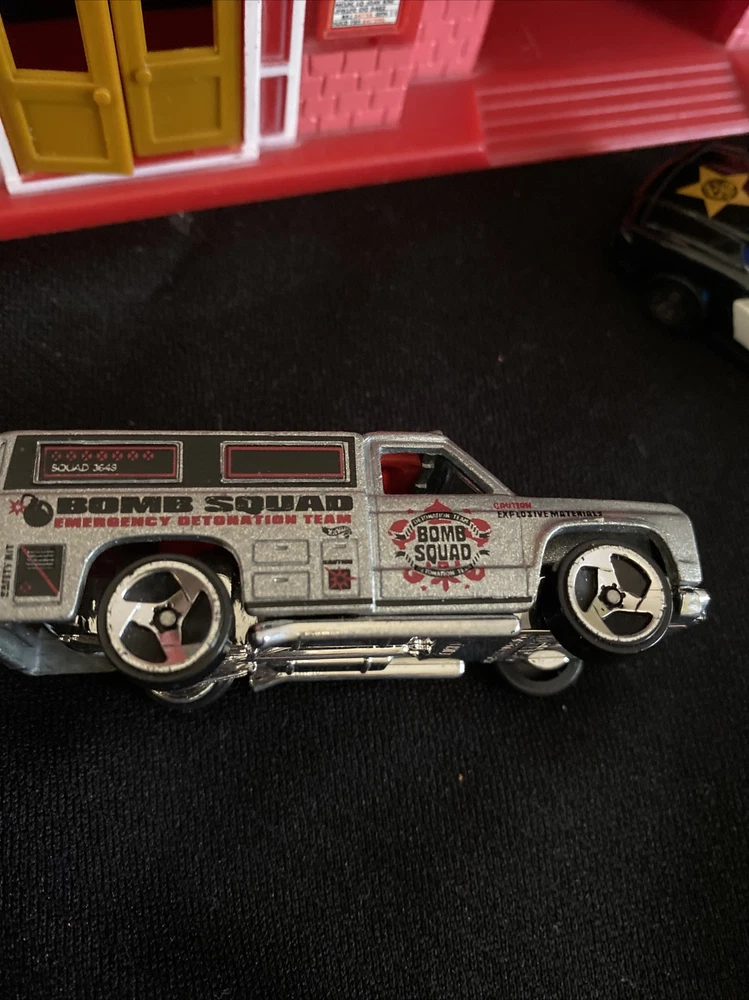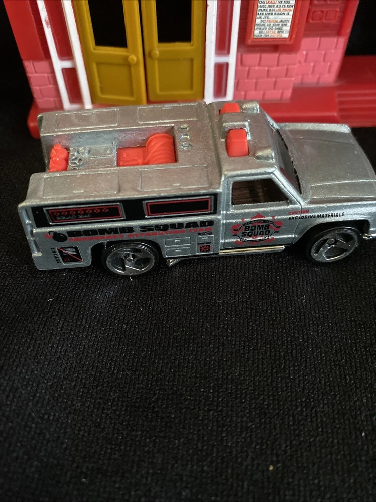 1974 Hot Wheels Bomb Squad Truck/1999 black-and-white Police car.