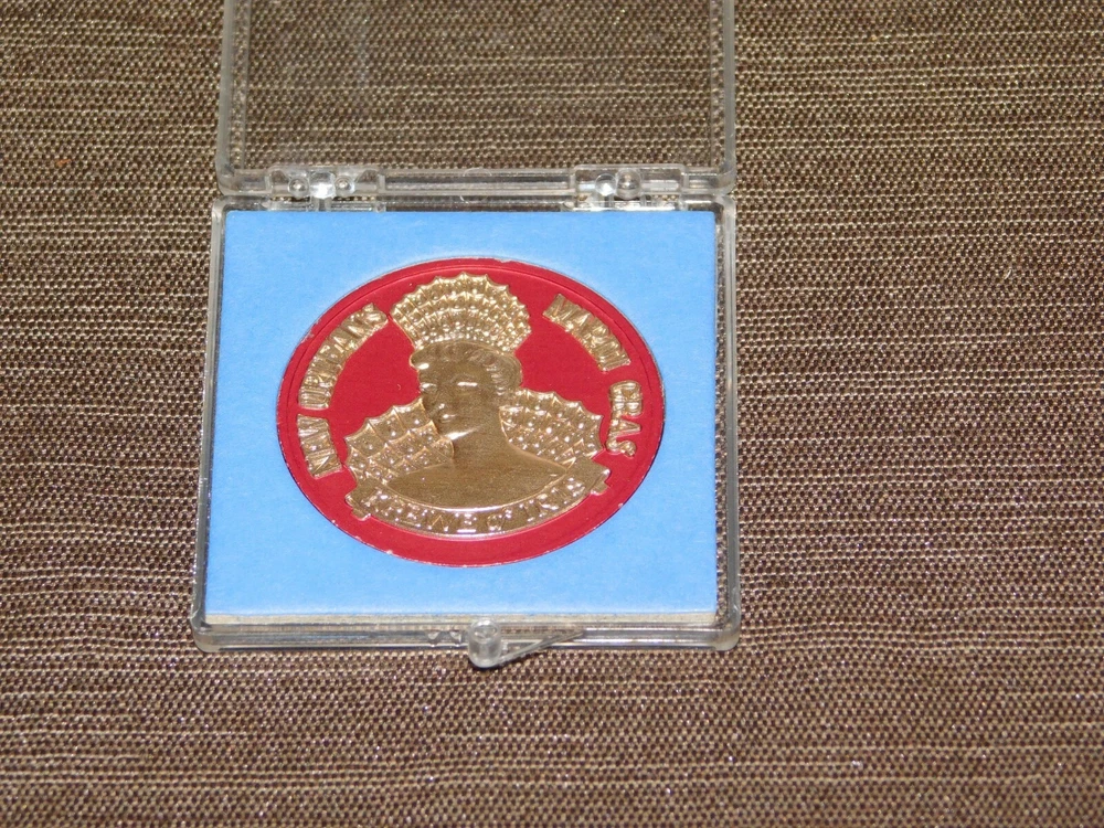 YOU ARE BIDDING ON....... VINTAGE 1974 54TH NTDRA CONVENTION NOLA MARDI GRAS NEW ORLEANS TOKEN COIN ....METAL MEASURES APPROX 1 1/2" ACROSS..NICE CONDITION..PLASTIC CASE SHOWS HANDLING WEAR..ONE OF THE HINGES IS BROKEN.... . .PLEASE VIEW PHOTOS FOR CONDITION.***PLEASE E-MAIL IF YOU HAVE A QUESTION OR WANT AN ADDITIONAL PICTURE....PLEASE VISIT MY EBAY STORE FOR ADDITIONAL VINTAGE ITEMS..THANK YOU***1T-BX5006-XXXX
