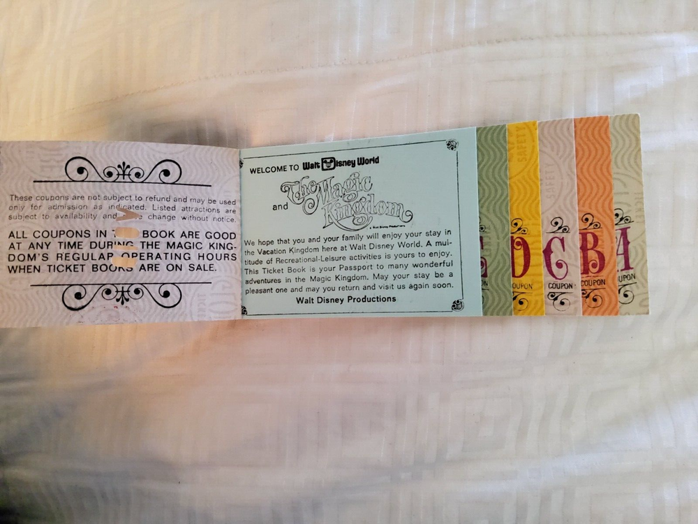 1974 Walt Disney World Adult Ticket Coupon Book Vintage 1970s Collectible