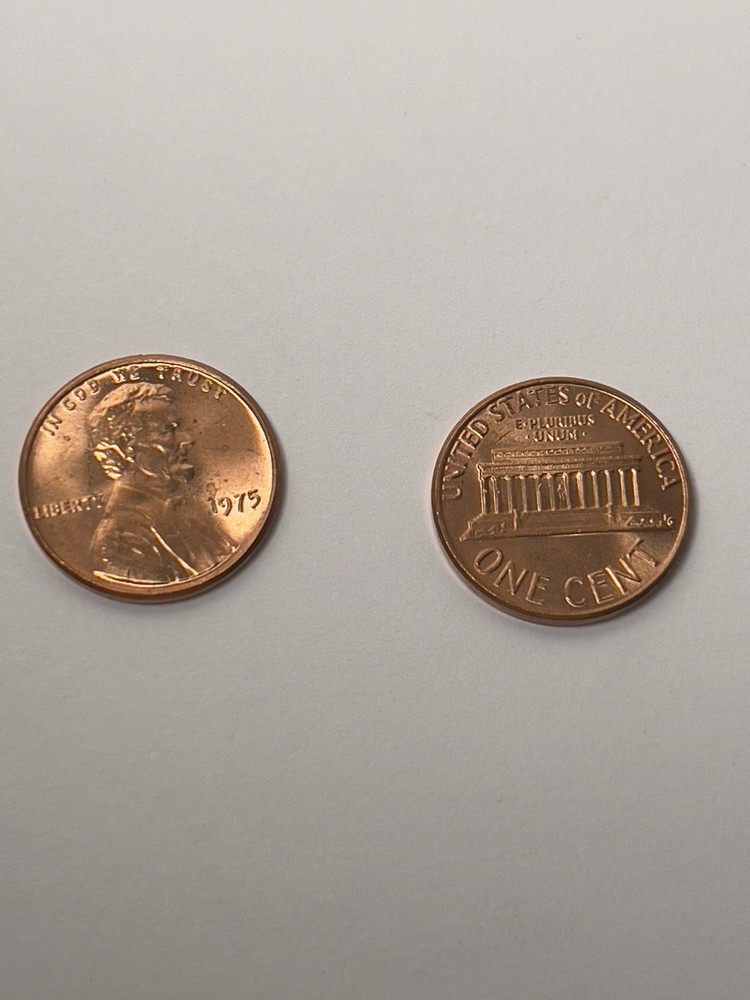This 1975 Lincoln Memorial penny is in About Uncirculated (AU) condition, pulled from an original roll of BU coins. While it retains strong details and some original luster , it may have minor imperfections or light discoloration from long-term storage—offered at a lower price than true BU examples. Coin Details: Date: 1975 Mint: Philadelphia (no mint mark) Condition: About Uncirculated (AU) Composition: 95% Copper From: Original BU roll Design: Classic Lincoln obverse and Lincoln Memorial reverse Ideal for budget-conscious collectors or set builders looking for a nice example without paying BU premiums.