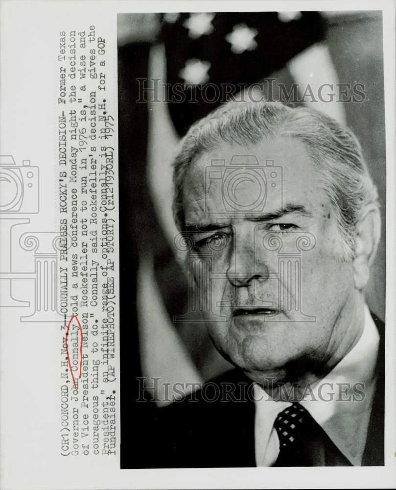 ebay template Note: Please study the images carefully to determine the condition of this vintage photograph, as it may not be in perfect condition. It may contain wrinkles, cracks, and possibly even tears due to its age and how it was handled before it got to us. A scanner may interpret colors and contrast differently than human eyes will, so it is possible that the actual photograph may be slightly darker or lighter in person. This vintage photograph is offered for sale as a collectible item and conveys no transfer of copyright. 1975 Press Photo John Connally discusses presidential race in New Hampshire This is an original press photo. Concord, New Hampshire. Former Texas Governor John Connally told a news conference Monday night the decision of Vice President Nelson Rockefeller not to run in 1976 is "a wise and courageous thing to do." Connally said Rockefeller's decision gives the President" an infinite range of options. Connally is in New Hampshire for a GOP fundraiser.Photo measures 8 x 10inches. Photo is dated 11-03-1975. PHOTO FRONT PHOTO BACK Historic Images Part Number: kfa13165 FAQs Q: Can I just download a digital version instead? A: No, we sell only vintage originals and do not make or distribute any copies, including digital ones. Q: Do you combine shipping and invoices? A: Multiple photos won on the same seller ID combine automatically through the eBay checkout process. If you encounter problems with this, send us a message via eBay messaging and we will send you an invoice. Due to eBay limitations, we cannot combine items won on our different seller IDs for a single shipping charge. Q: How quickly do you ship the items once paid? A: We ship within one business day after your payment clears. If you do not receive an "order shipped" email from us by the close of the second business day from submitting payment, please e-mail us via eBay messaging. Q: How do you make sure my photograph arrives safely? A: We package each order between two cross-corrugated pieces of cardboard to ensure that the package is as difficult to bend as possible. We then wrap each order in a plastic sheet to help protect against moisture. We want you to rest assured that we take every precaution to ensure that the photograph you receive will be in the same condition in your care as it was in ours. Q: Will the "Historic Images" watermark be on my photo when I receive it? A: No. This is a digital watermark we use to protect our images. It is not printed on the photo. Q: What are your office hours? A: eBay for us is a business, and a very fun one to be in! We are open M-F 9 to 5 (CST). Therefore, we do not return e-mails and phone calls over the weekend. We observe the following holidays: New Years Day, Memorial Day, Fourth of July, Labor Day, Thanksgiving and the day after Thanksgiving, Christmas Eve and Christmas Day. Q: Where did all these vintage photos come from? A: These original vintage photographs are from various news service and newspaper photo archives from locations around the country including: Boston, Detroit, Tampa, Chicago, Denver, Seattle, New Orleans, Milwaukee, Portland, Spokane, and more. We do not copy or reproduce any photographs -- every item is a unique vintage piece that was housed in a news archive. Q: Can I use this photograph in my book/blog/website? A: The short answer is no. There is no transfer of copyright for republication or reproduction with these photographs when you purchase them, and only photographs taken before 1923 are currently automatically in the public domain. Permission from the copyright holder, which usually can be identified from the back of each photo, must be sought to republish or reproduce the image for any purpose. Q: Do you relist items (in case I miss an auction ending)? A: Auction items that receive no bids are relisted in our store (historicimages-store on eBay) as a fixed-price item and at a higher price than the starting auction price. Q: Do you leave feedback? A: Yes, we always leave feedback for buyers. Our software monitors when our buyers leave us feedback, then notifies us that we can leave feedback for the buyer. Rest assured, if you leave feedback, we will do the same! Check out our family of eBay IDs: historicimages01 Sports Photos historicimages02 Entertainment Photos historicimages03 Americana Photos historicimages04 International & War Photos historicimages05 Transportation Photos historicimages06 Photos of All Subjects historicimages07 Entertainment Photos historicimages08 Newsworthy Photos historicimages09 Entertainment Photos historicimages10 Sports Photos historicimages-store Our largest fixed-price selection historicimages-gallery Hand-picked photos Saturday night auctions About Us Historic Images was formed in September 2009, with a handful of scanners working out of a basement to digitize newspaper photo archives. We have since moved out of the basement, and we can now archive thousands of photos per day. Our company has worked with magazines and newspapers from Detroit, Boston, Denver, Seattle, Tampa, Chicago, and New Orleans, just to name a few. We are constantly adding to our inventory, and have assembled an archive of millions of photos to date. As our company evolved, we began our eBay business, which brings thousands of fresh auctions per week to the world's largest online auction marketplace. Our custom software systems and team of great employees allow us to efficiently scan and sell large photo archives online. At the very core of our company's DNA is a strong commitment to customer satisfaction and strict integrity for our product. Our promise to you is that we will do everything in our power to provide you a great buying experience. Copyright 2009 - Present, Historic Images, Inc. Sell Smarter with Kyozou. Inventory and Ecommerce Management