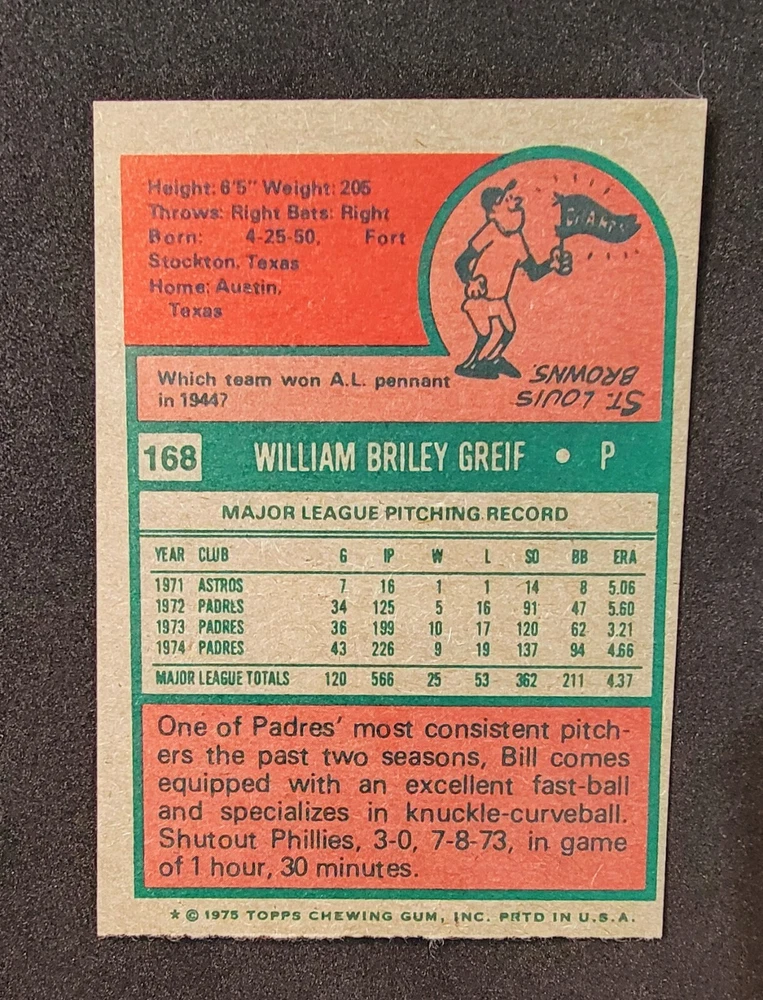 1975 Topps Mini #168 Bill Greif EXMT+ Padres