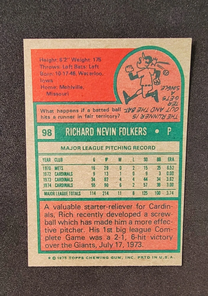 1975 Topps Mini Set-Break # 98 Rich Folkers NR-MINT